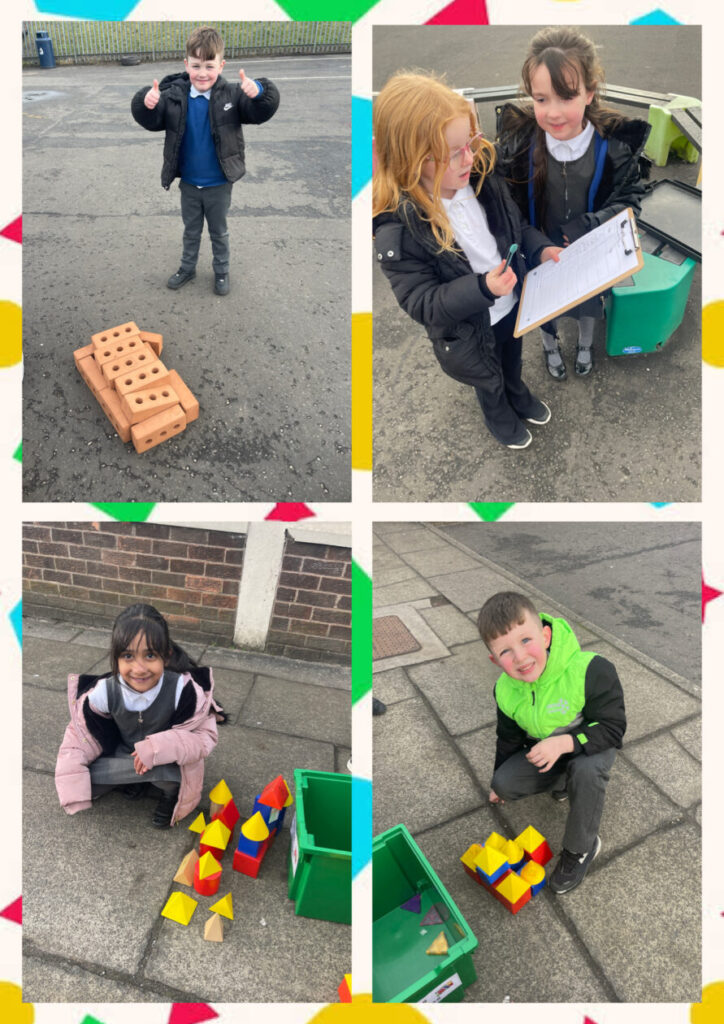 Primary 2 took their learning outside to construct famous Scottish monuments and landmarks. Mrs Merrison was blown away by the children’s teamwork while constructing football stadiums, the Forth Rail Bridge, the Kelpies and Arria the Cumbernauld mermaid.