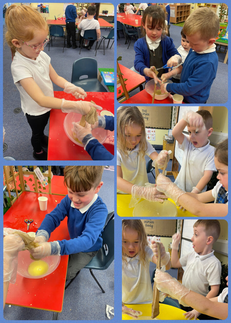 This week, Primary 2 continued their learning about the human body and we learned all about the digestive system. We learned the scientific names for the parts of this system and practised using them through playful activities. Today we demonstrated how the digestive system works with a science experiment, ask us all about it!