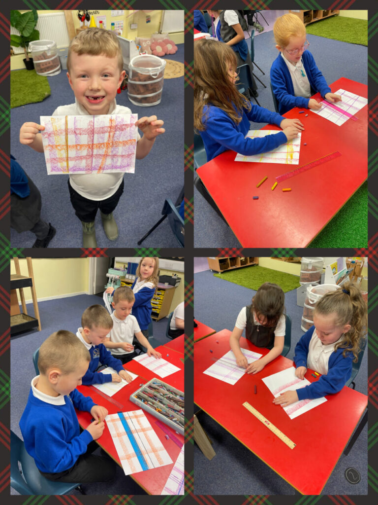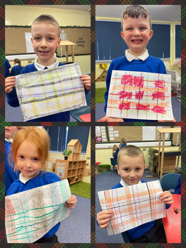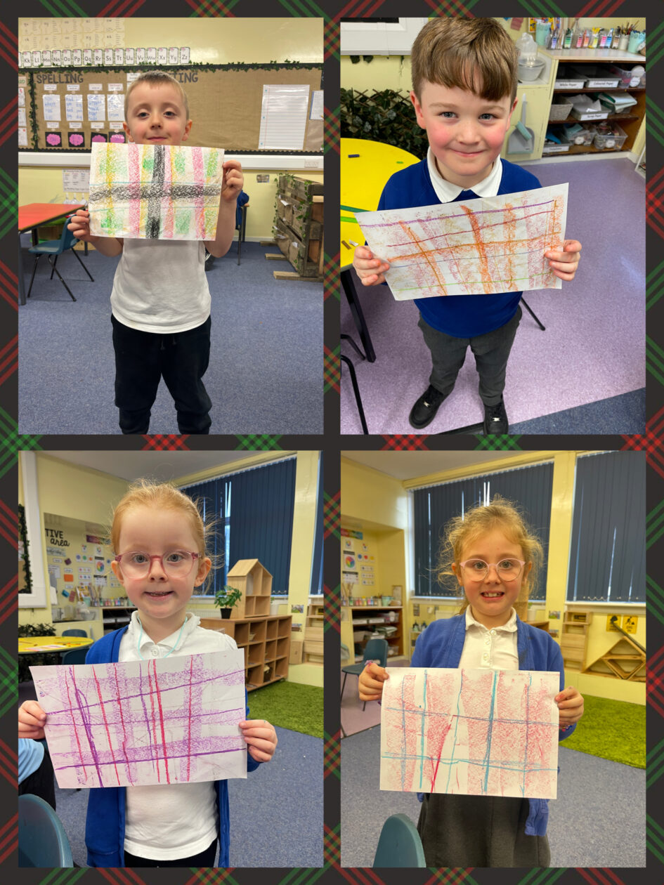 Primary 2 were happy to be back at school and get started on their new topic, Scotland. We learned all about the history of tartan and then had a go at creating our own. We used a series of vertical and horizontal lines of different sizes and colours and the results were amazing. We also carried on learning the colours in French and made fortune tellers to practise this vocabulary.