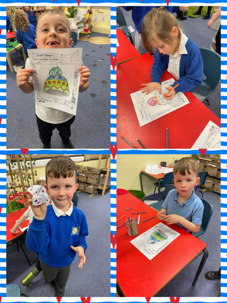Primary 2 have been learning how to greet each other in French. So far we have learned; Salut, Bonjour, Je m’appelle and ca va. We made french puppets to practise these greetings with our friends.