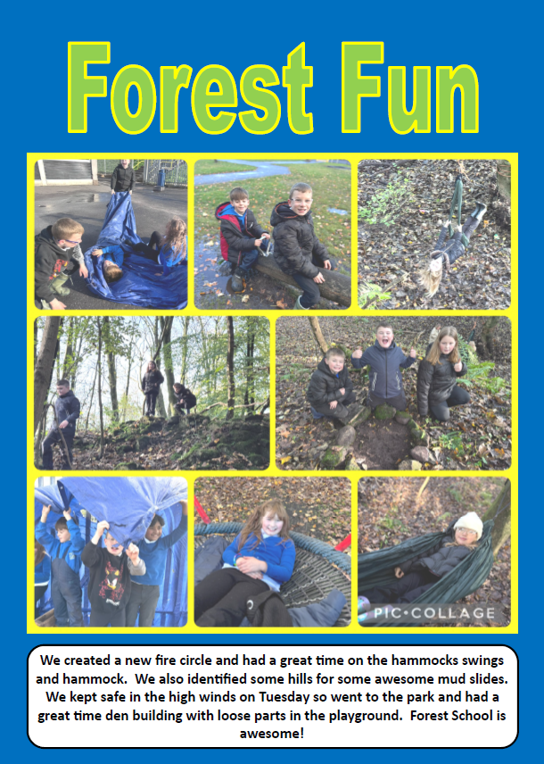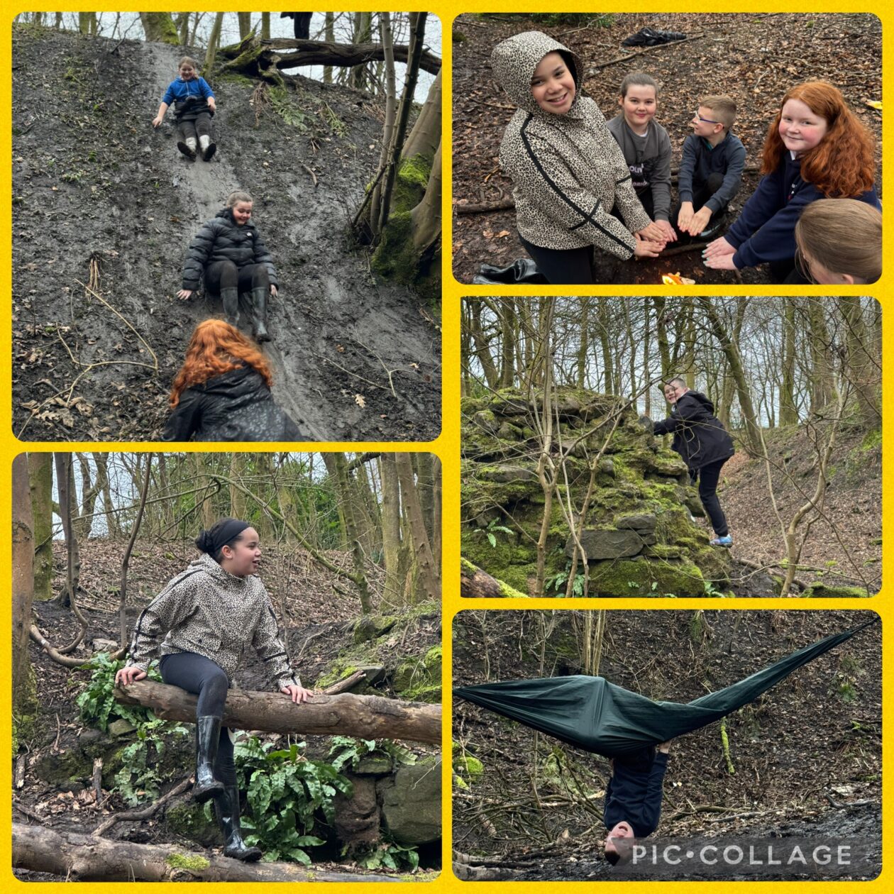 We created a new fire circle and had a great time on the hammocks swings and hammock. We also identified some hills for some awesome mud slides. We kept safe in the high winds on Tuesday so went to the park and had a great time den building with loose parts in the playground. Forest School is awesome!