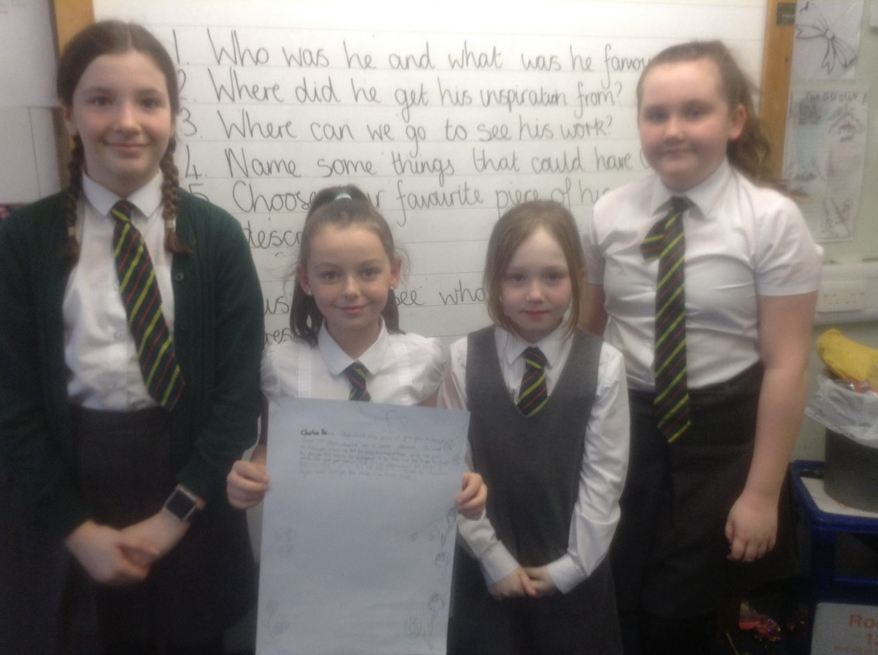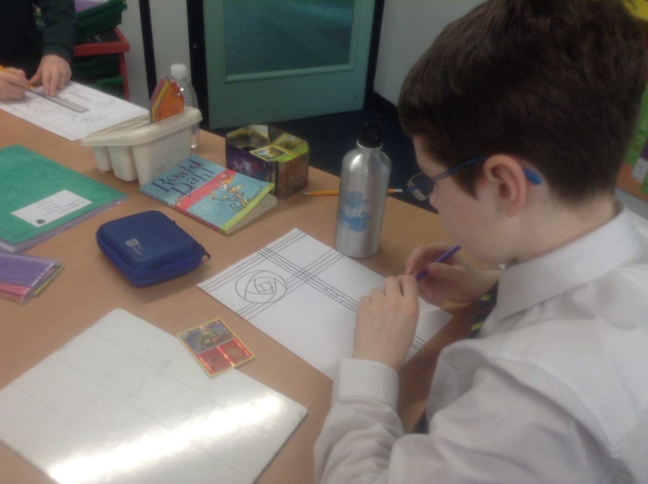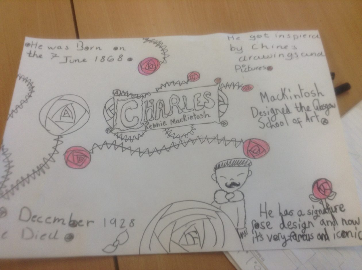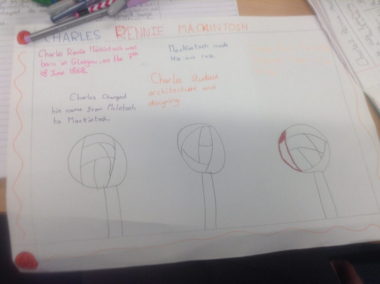 the children in Room 12 have been learning about Charles Rennie Mackintosh and have been drawing his rose designs.