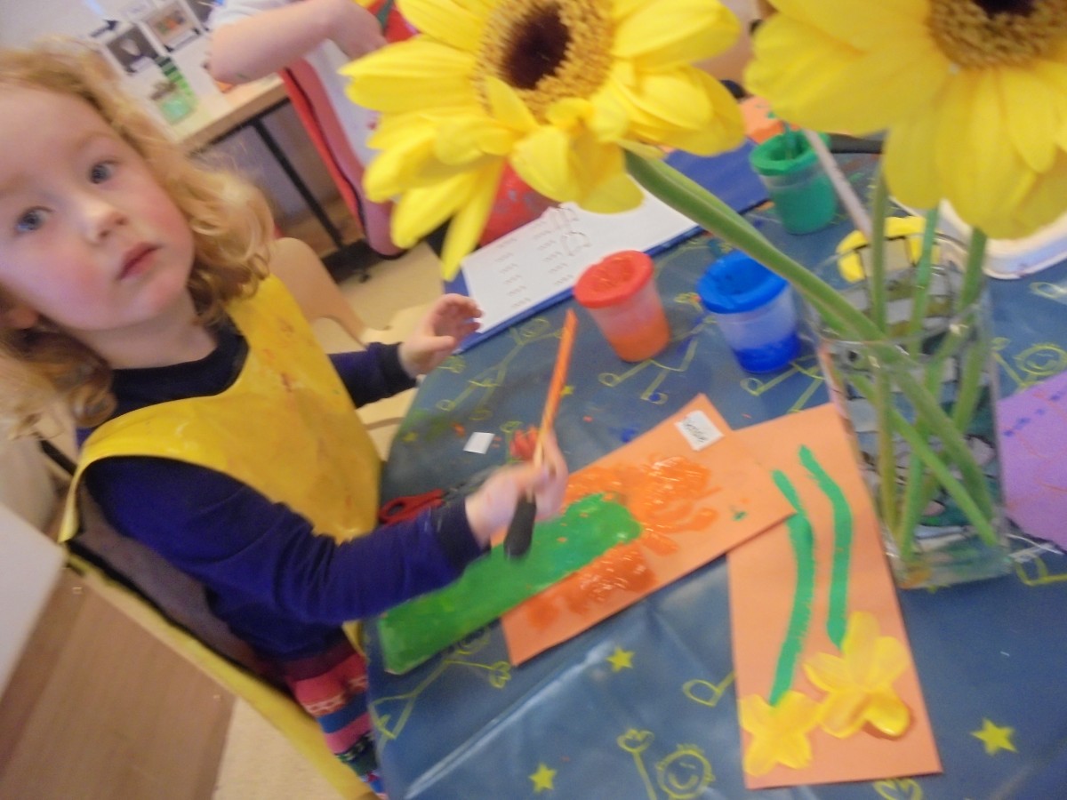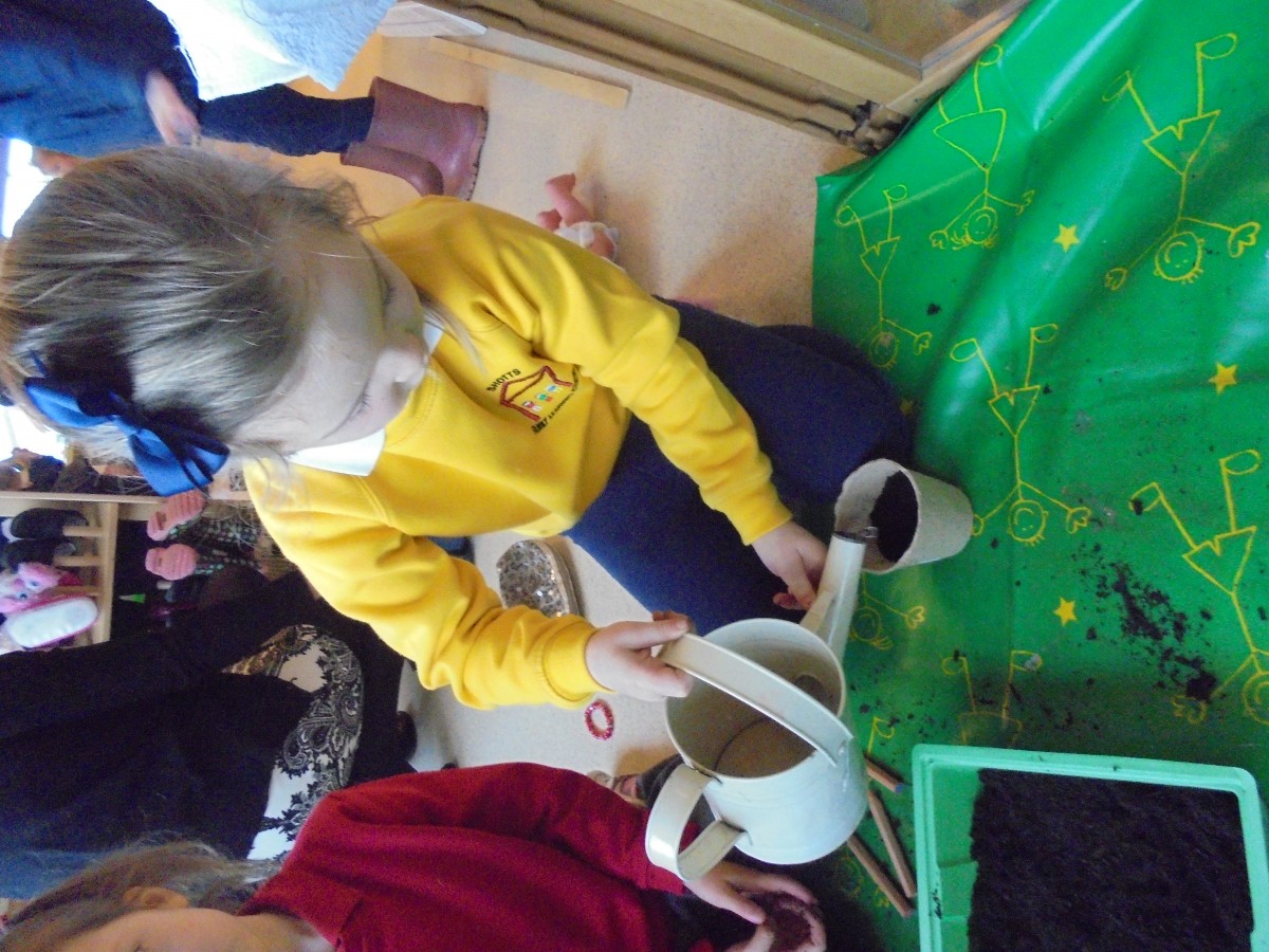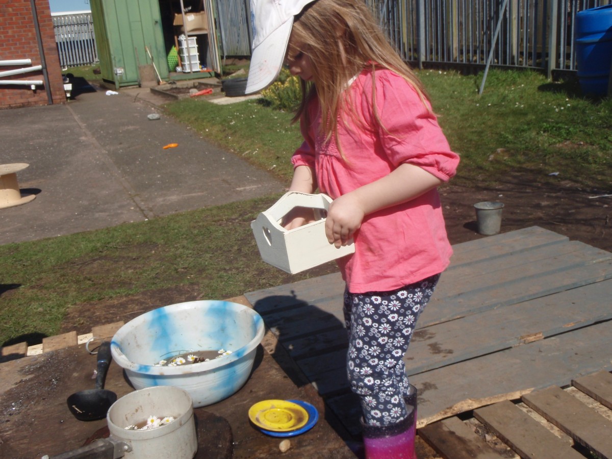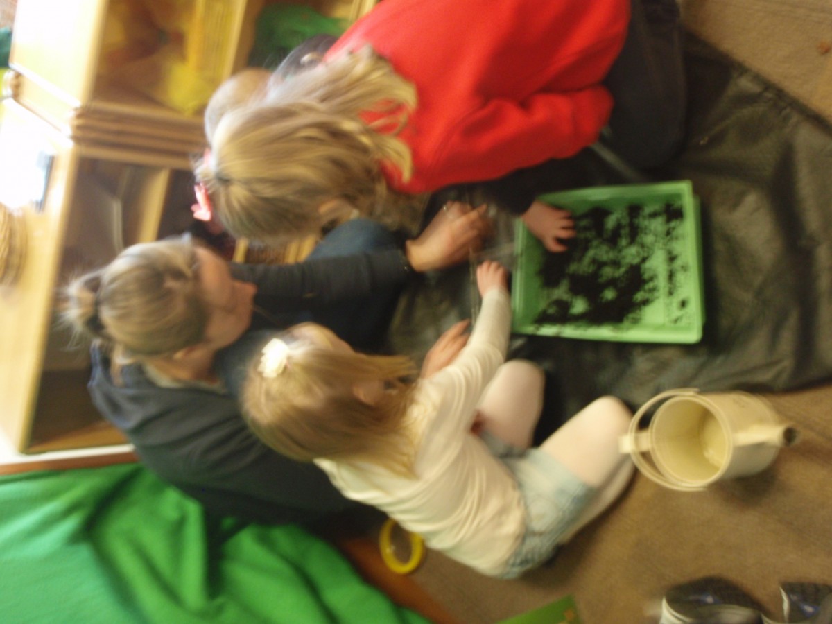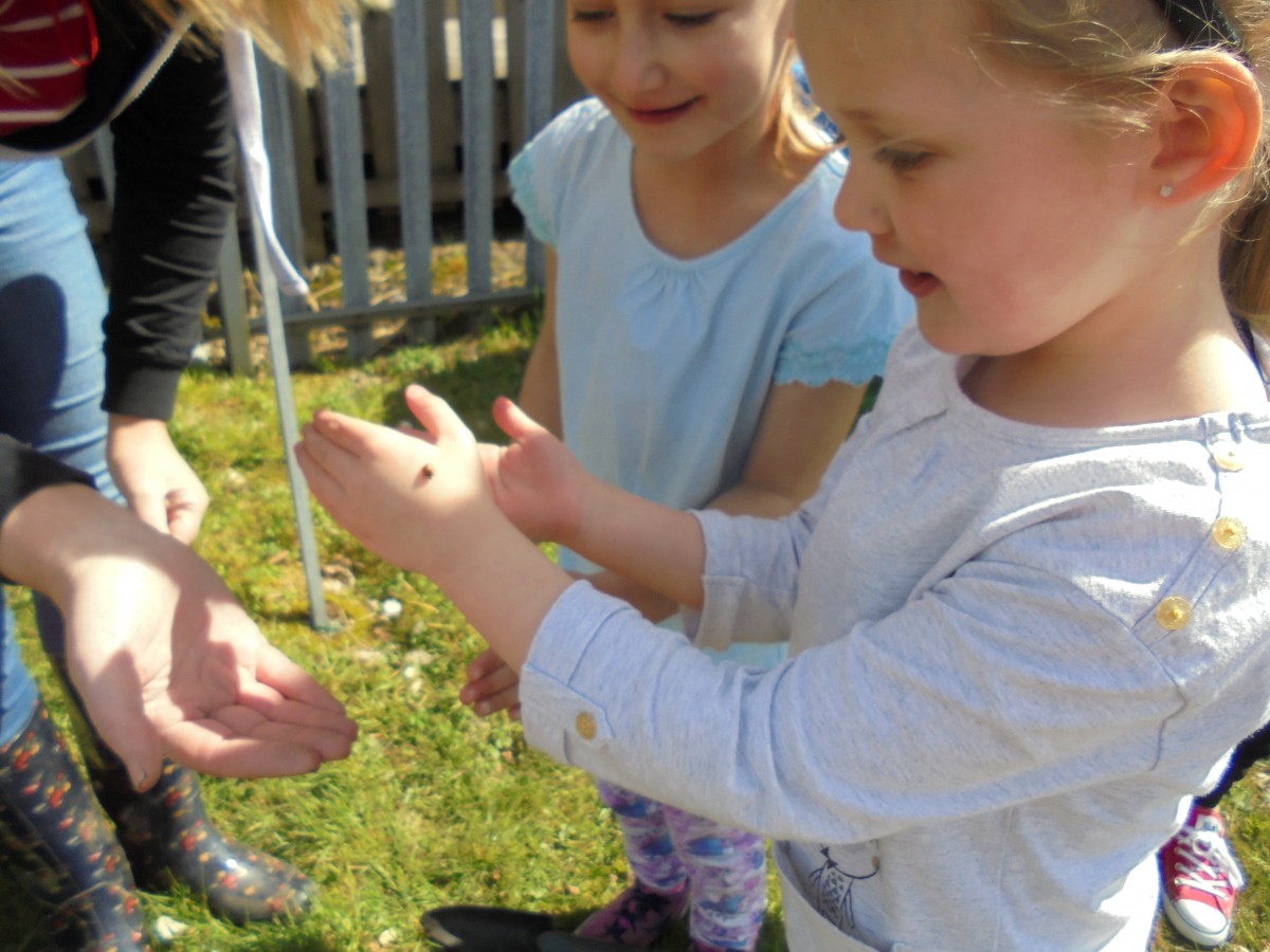 Children within the 3-5 playroom have returned from the Easter break full of energy and ready to learn. With the welcomed appearance of the sun and the temperatures rising the children have been even more motivated to explore the outdoor environment where they are discovering the sequence of how living things grow and develop as they plant seeds and learn what they need to survive. Going on bug hunts using magnifying glasses has introduced the children to size and amounts as they discover the interesting creatures that live in our garden, information books have provided further knowledge on these topics and helped the ladies to answer the many questions asked. Within the playroom these interest have been supported as children can recreate the images they have seen including flowers and mini beasts using a range of media. Jigsaws, table top games, small world resources and Smart Board programmes have been used to enable children to researching within a variety of ways.