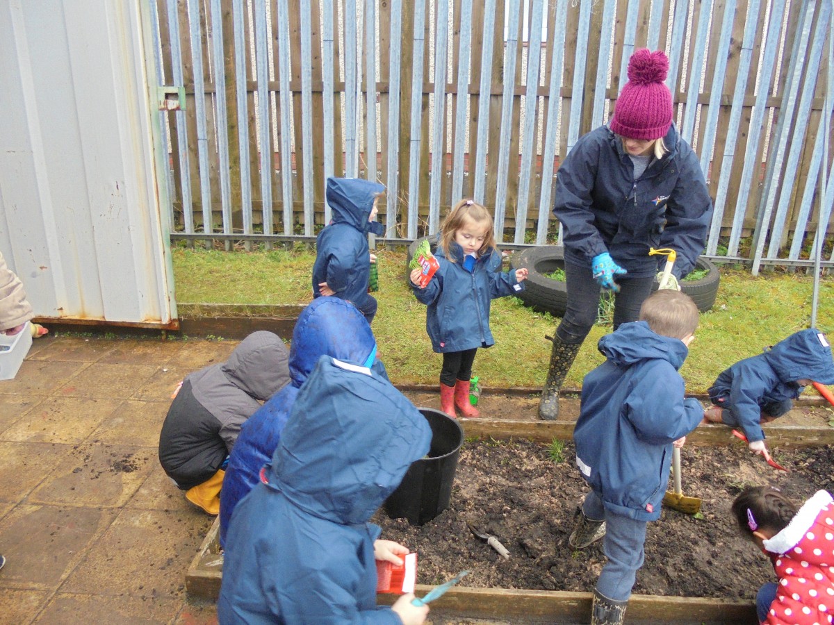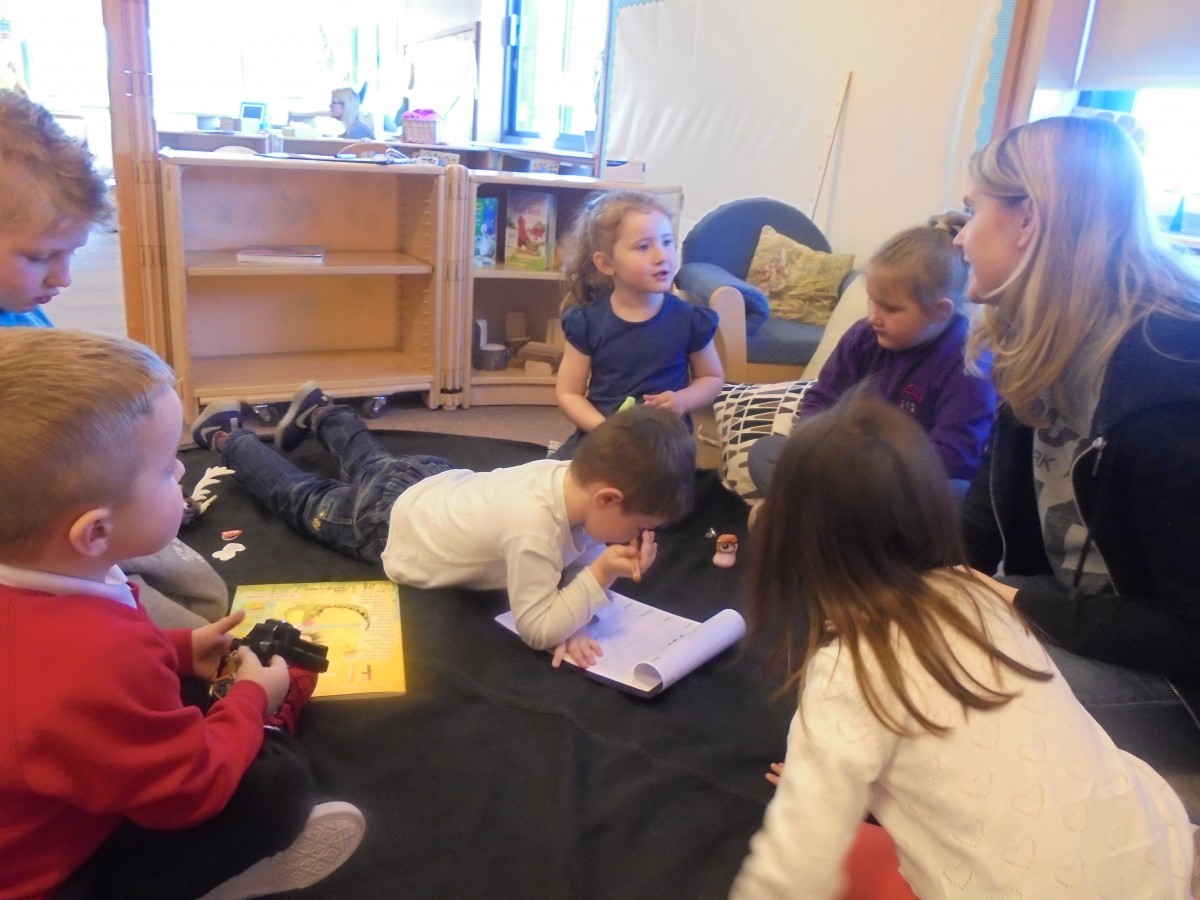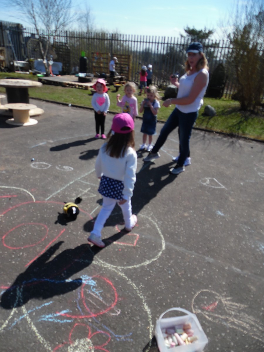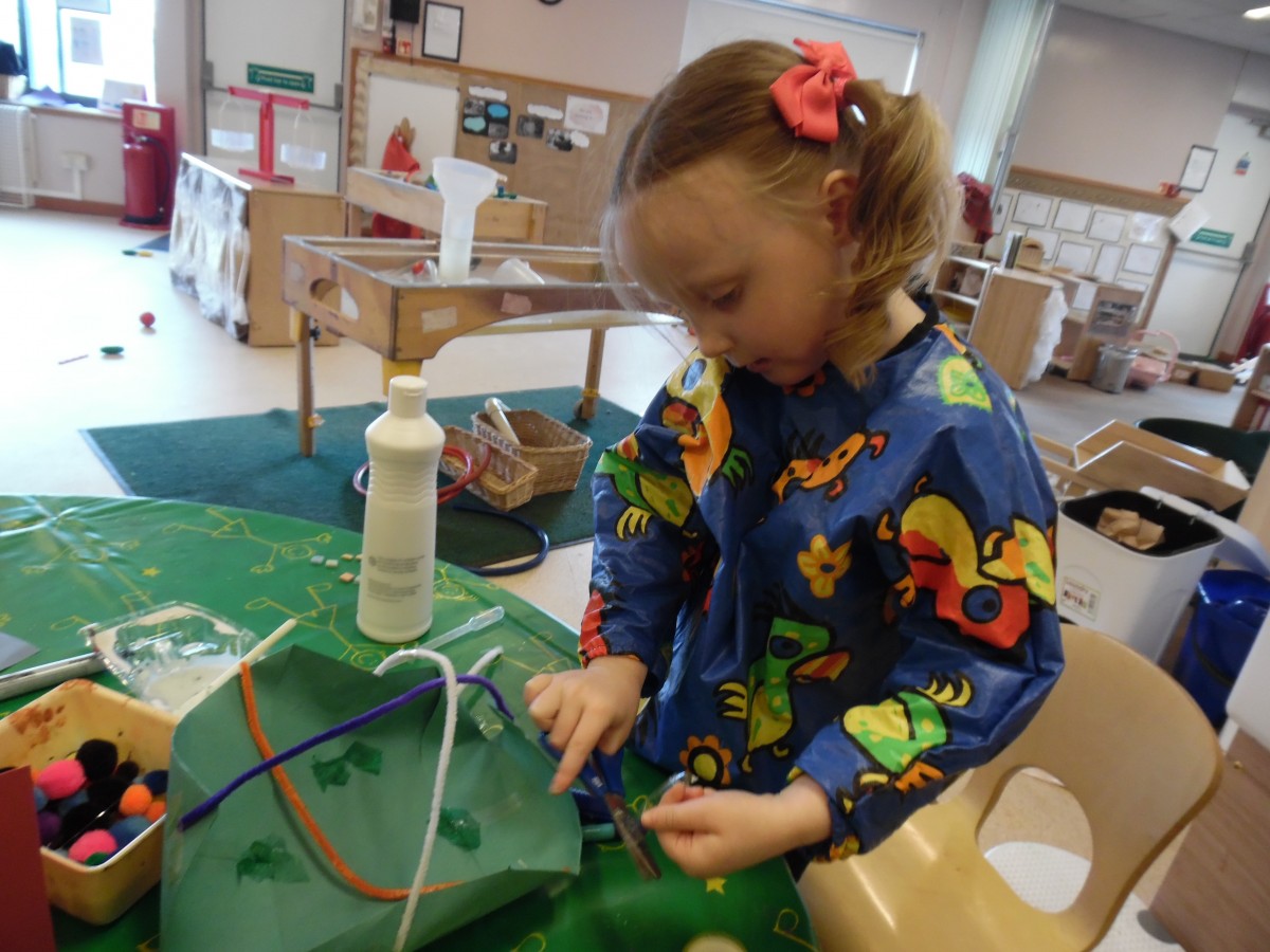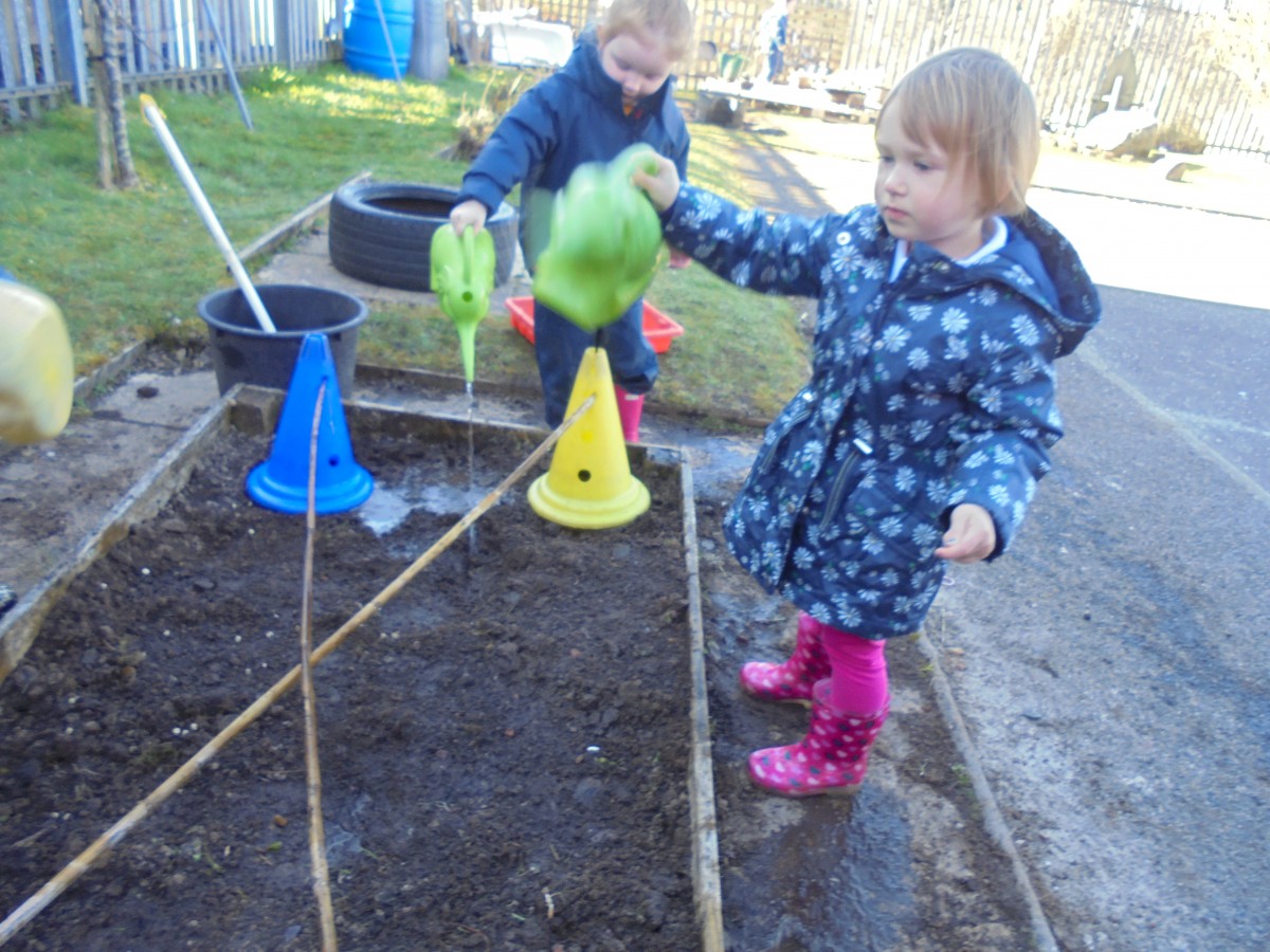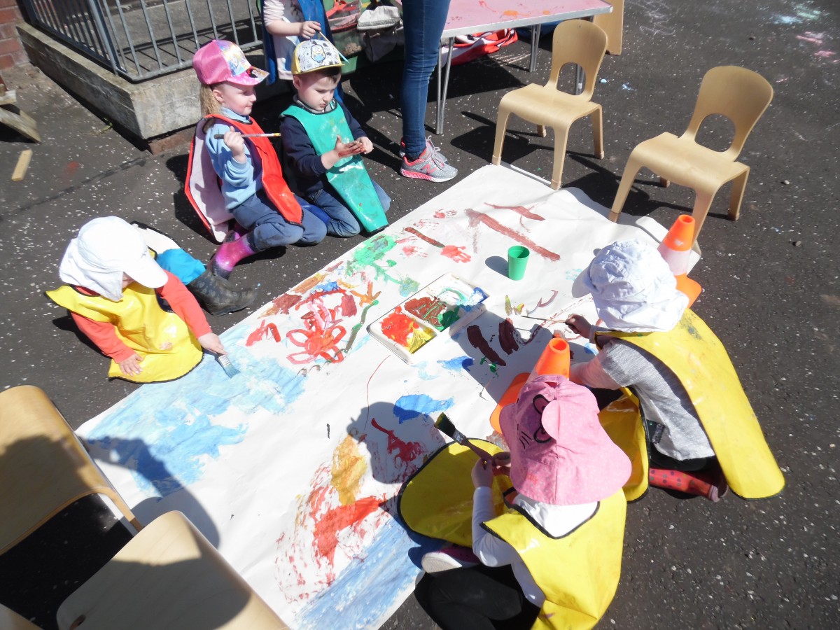 Children within the 3-5 playroom have returned from the Easter break full of energy and ready to learn. With the welcomed appearance of the sun and the temperatures rising the children have been even more motivated to explore the outdoor environment where they are discovering the sequence of how living things grow and develop as they plant seeds and learn what they need to survive. Going on bug hunts using magnifying glasses has introduced the children to size and amounts as they discover the interesting creatures that live in our garden, information books have provided further knowledge on these topics and helped the ladies to answer the many questions asked. Within the playroom these interest have been supported as children can recreate the images they have seen including flowers and mini beasts using a range of media. Jigsaws, table top games, small world resources and Smart Board programmes have been used to enable children to researching within a variety of ways.