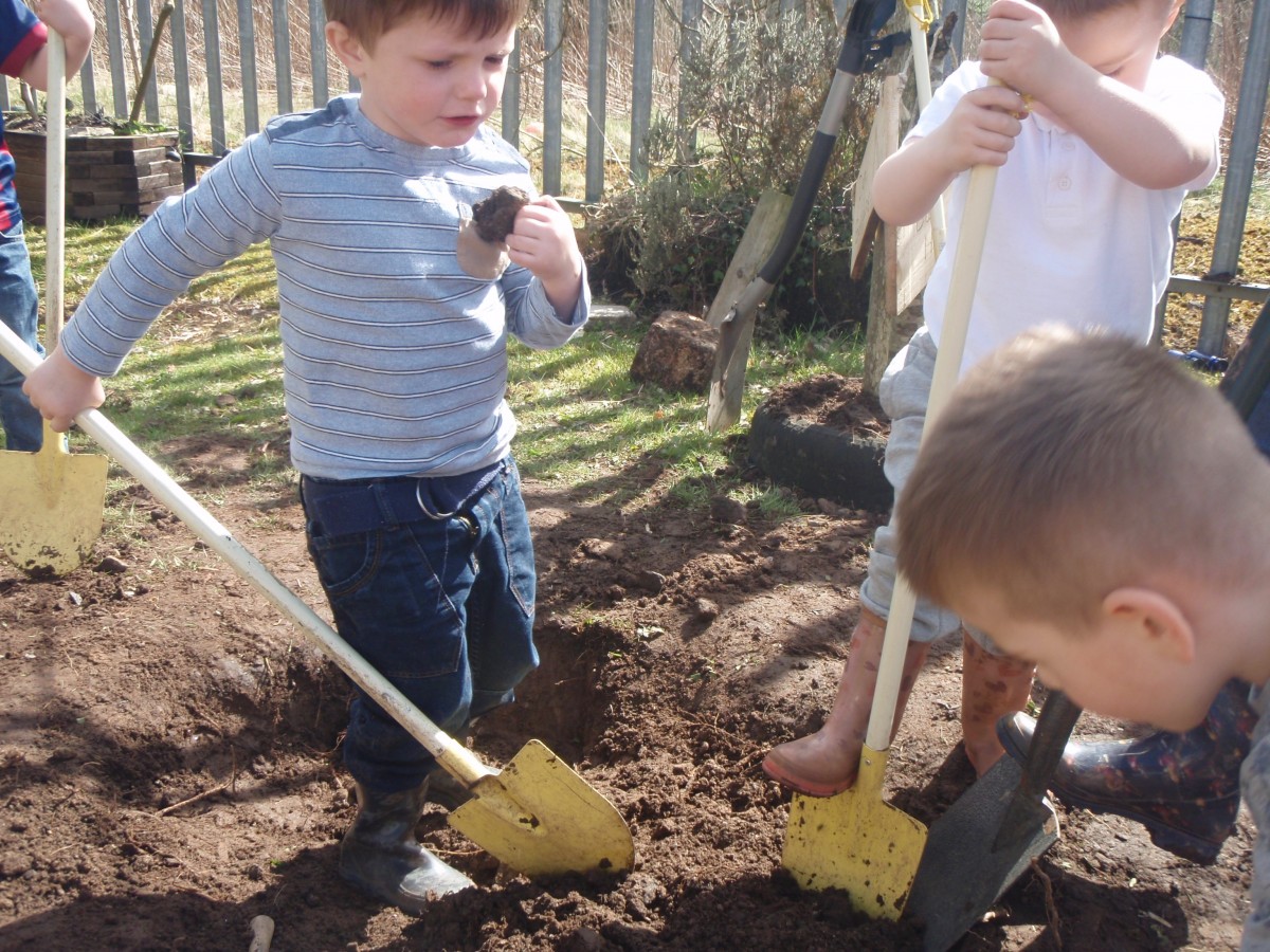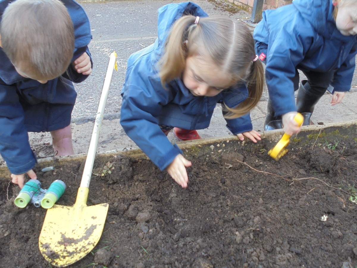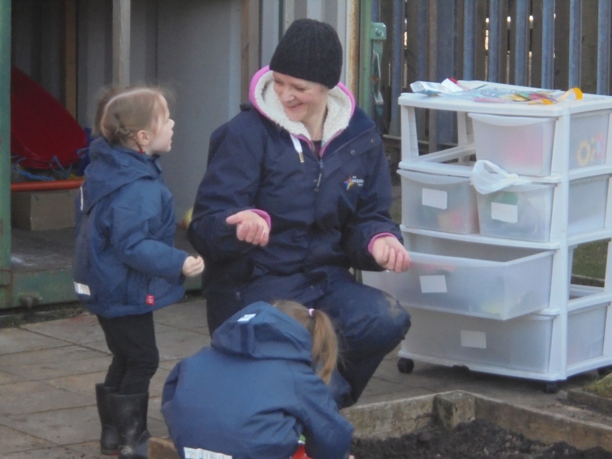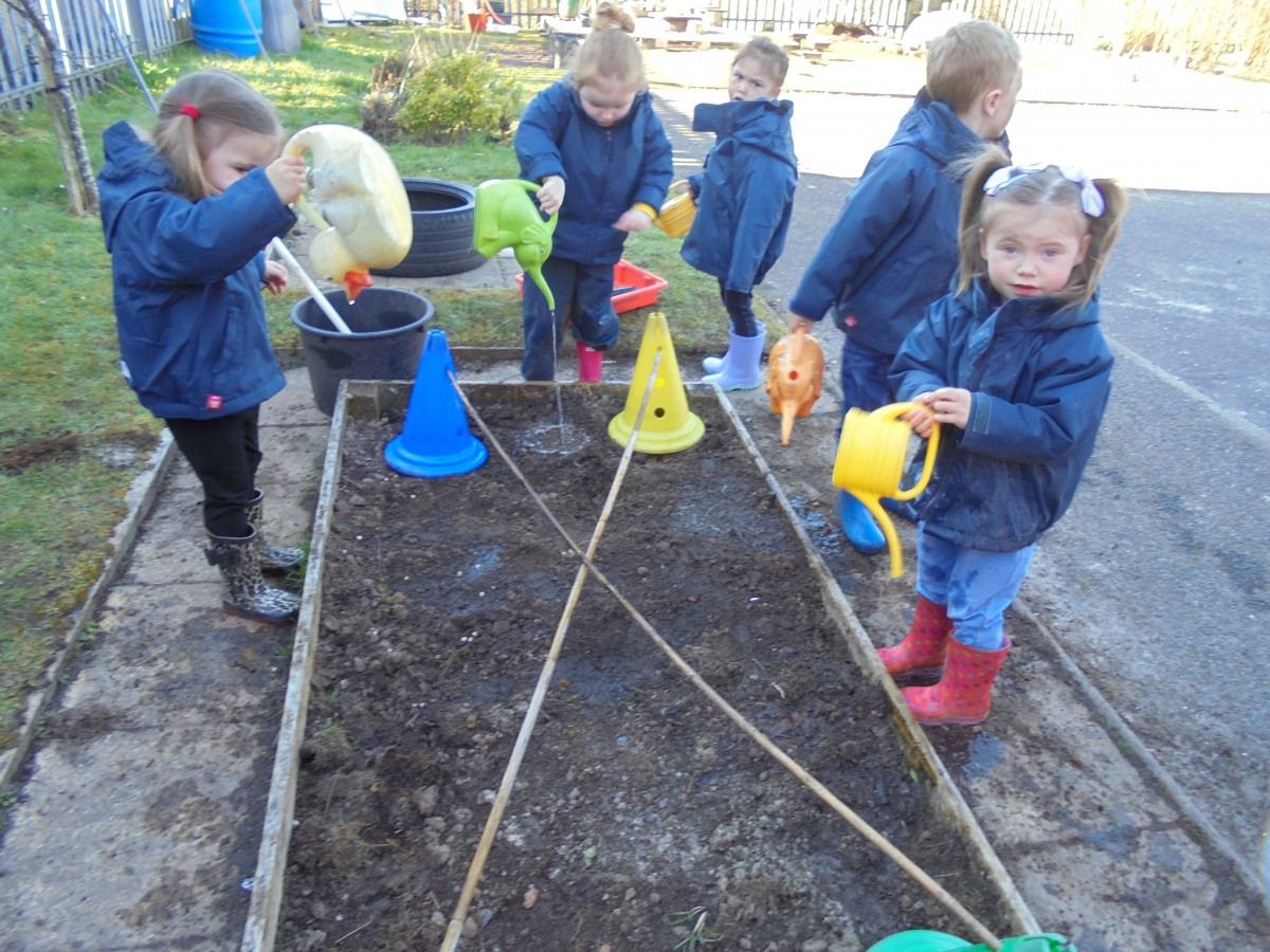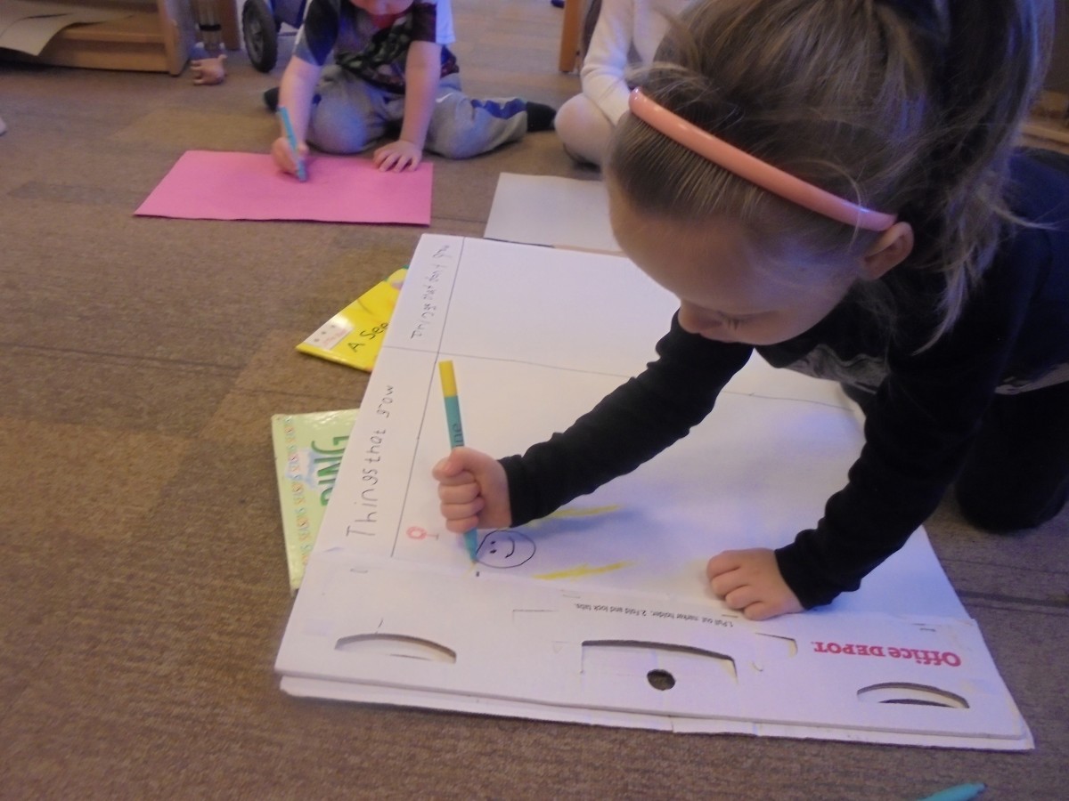 Children within the 3-5 playroom have returned from the Easter break full of energy and ready to learn. With the welcomed appearance of the sun and the temperatures rising the children have been even more motivated to explore the outdoor environment where they are discovering the sequence of how living things grow and develop as they plant seeds and learn what they need to survive. Going on bug hunts using magnifying glasses has introduced the children to size and amounts as they discover the interesting creatures that live in our garden, information books have provided further knowledge on these topics and helped the ladies to answer the many questions asked. Within the playroom these interest have been supported as children can recreate the images they have seen including flowers and mini beasts using a range of media. Jigsaws, table top games, small world resources and Smart Board programmes have been used to enable children to researching within a variety of ways.