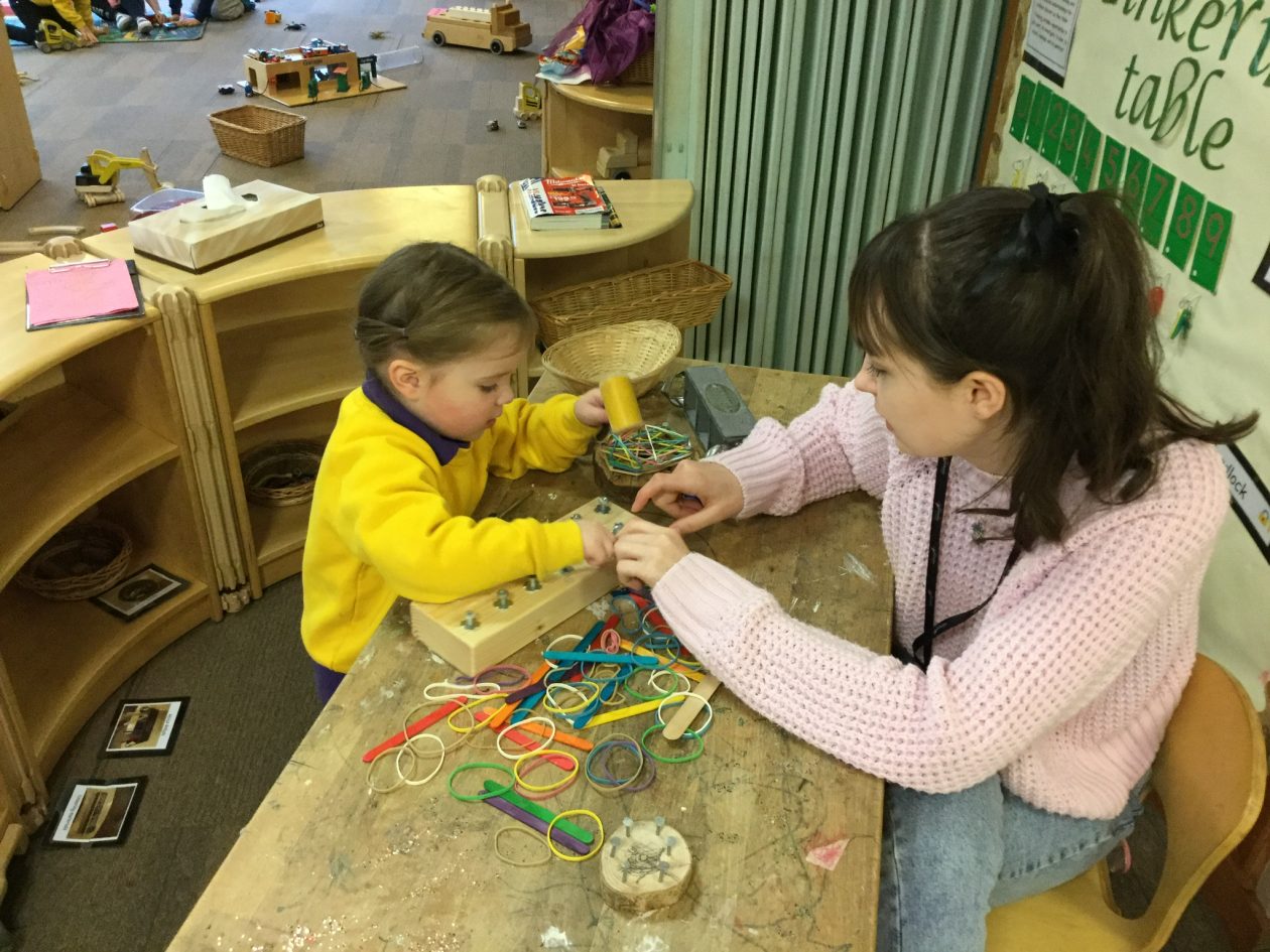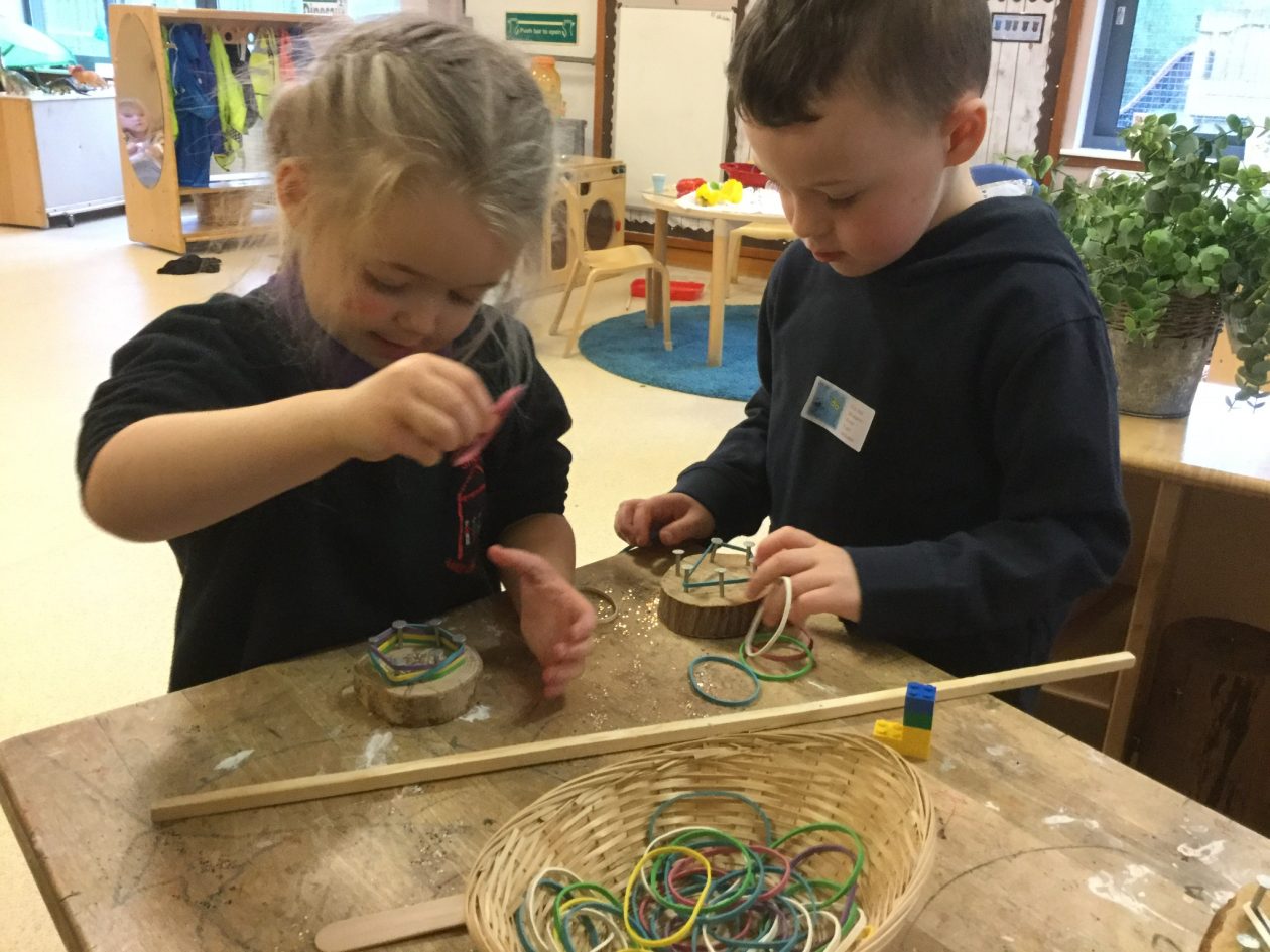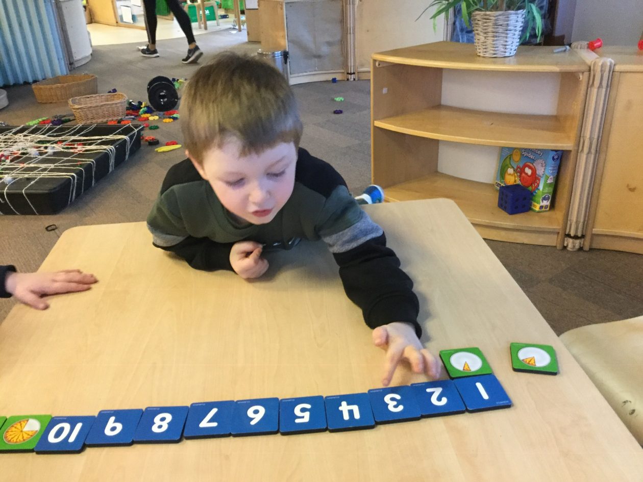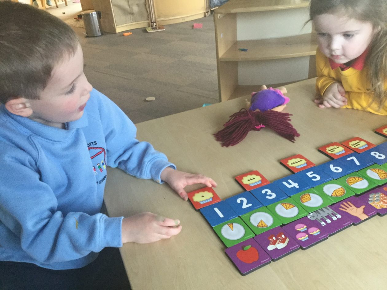 The children have enjoyed building relationships through the use of a variety of table top games and puzzles, where they continue to develop turn taking , sharing and helping each other. There have been many opportunities to develop awareness of matching, sorting and counting. The children have particularly enjoyed spending time within the story corner listening to stories that have captured their imagination, this has enabled them to transfer this interest within other areas of the nursery with all practitioners facilitating this learning .