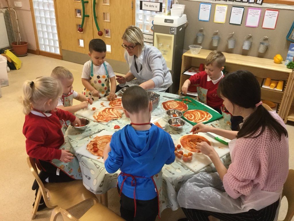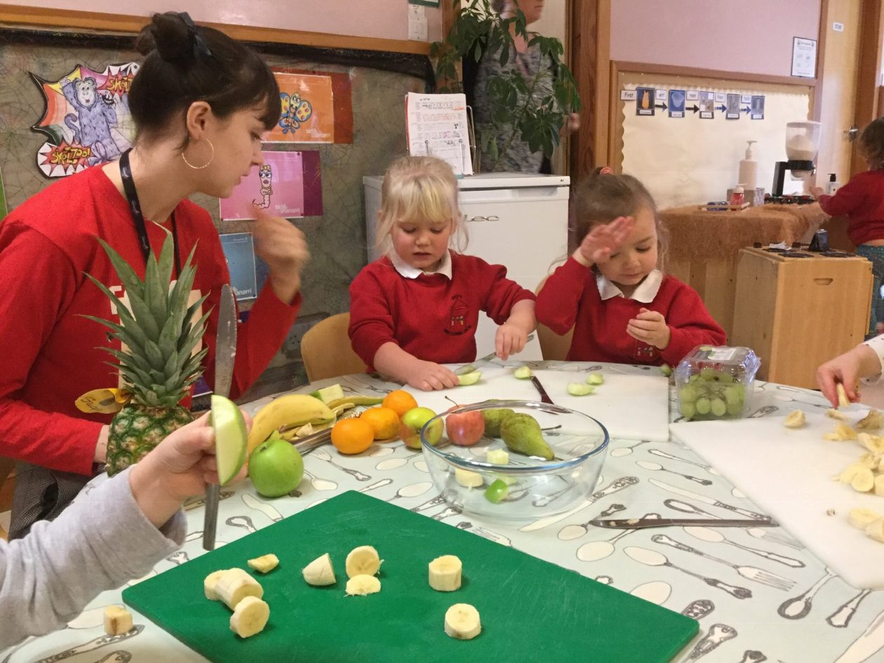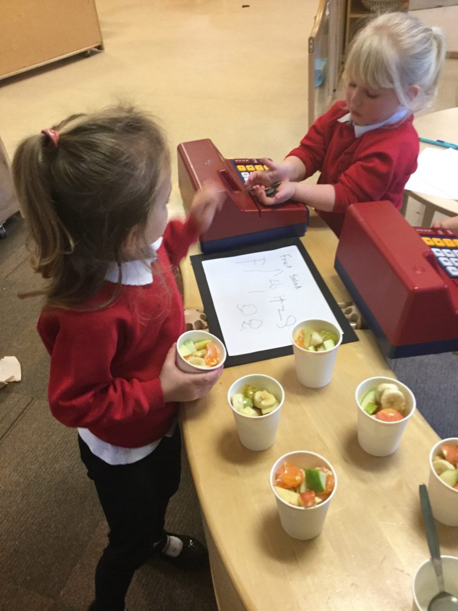 Children have demonstrated a keen interest in cooking and baking and have been supported in creating their own shopping list, developing control of their fine movements whilst using a variety of mark making resources. Some children have participated in outings to the shops to buy the ingredients and have become bakers in the kitchen with delicious Banana Bread and smoothie ice lollies being made. The use of measuring scales, spoons and measuring jugs have enabled the children to begin to develop their awareness of measure, counting and quantities.