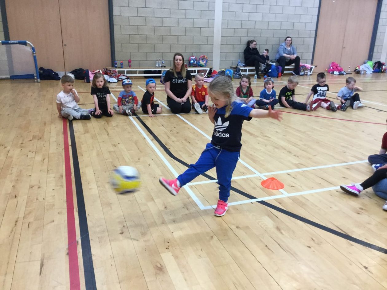 The children have now successfully completed a 6 week programme of Mini Kickers sessions in conjunction with NL Leisure. The sessions, which have taken place in Calderhead High School have provided the children with a range of learning opportunities with coaches, Darren and Mya guiding them through each session. Through fun and energetic games such as ‘tunnel tig’, ‘banana tig’ and the ‘pirate ship game’, the children have been learning how to listen to and follow instructions, share space with others and work together as part of a team. Using a football the children have also had opportunities to develop their balance, hand-eye coordination and movement as they have built upon skills such as dribbling the ball and stopping the ball with their foot, each week. By taking turns to kick the ball into the goals, the children have experienced a real sense of achievement once they score, and have been encouraged to celebrate this by the coaches every week. We would like to thank all of the parents who helped to walk the children safely to and from the school every Tuesday. This was a lovely opportunity to engage in conversations with the children as we ‘walked and talked.’
