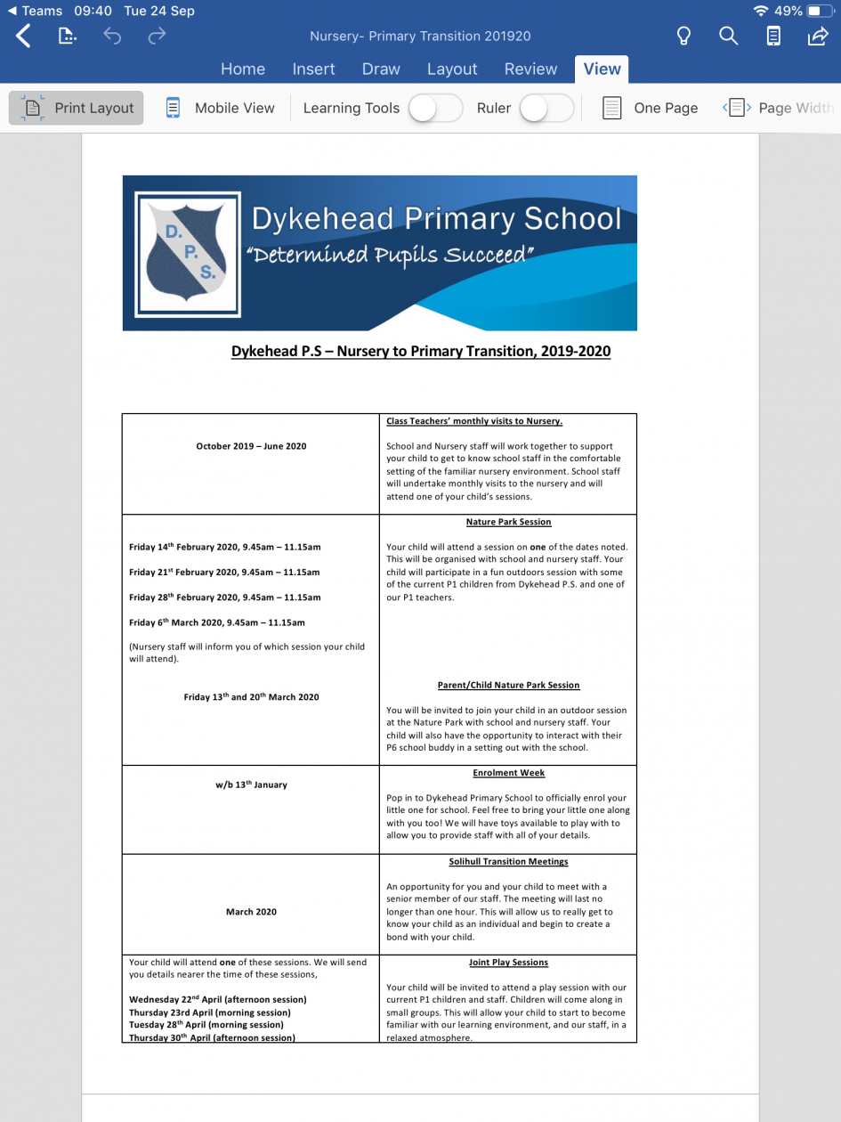 Please remember to check your Transition Calendar for forthcoming events.