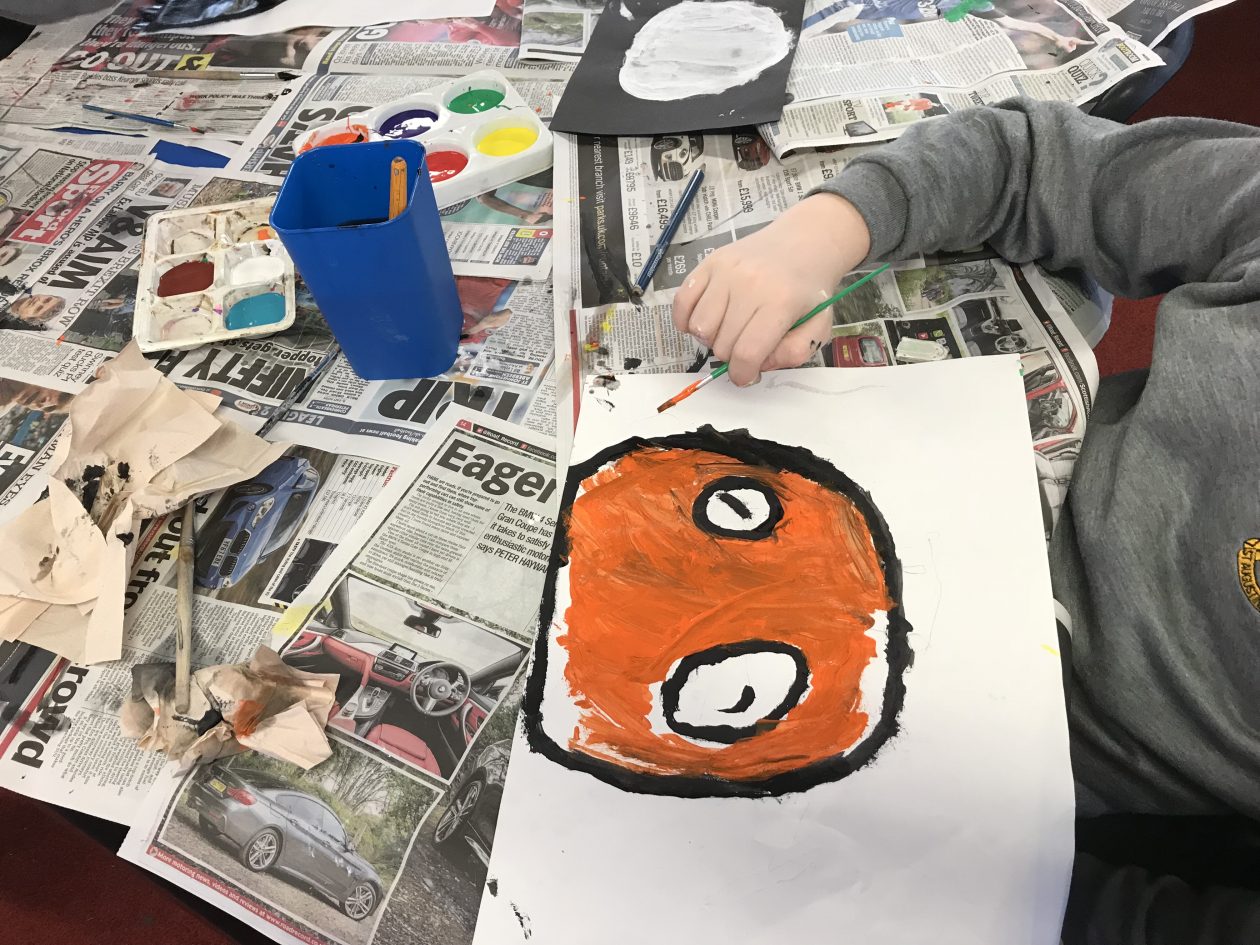 The boys and girls of P7 were busy creating some Halloween Art this afternoon. We are going to decorate the hall at the disco tomorrow night with our finished works of art.