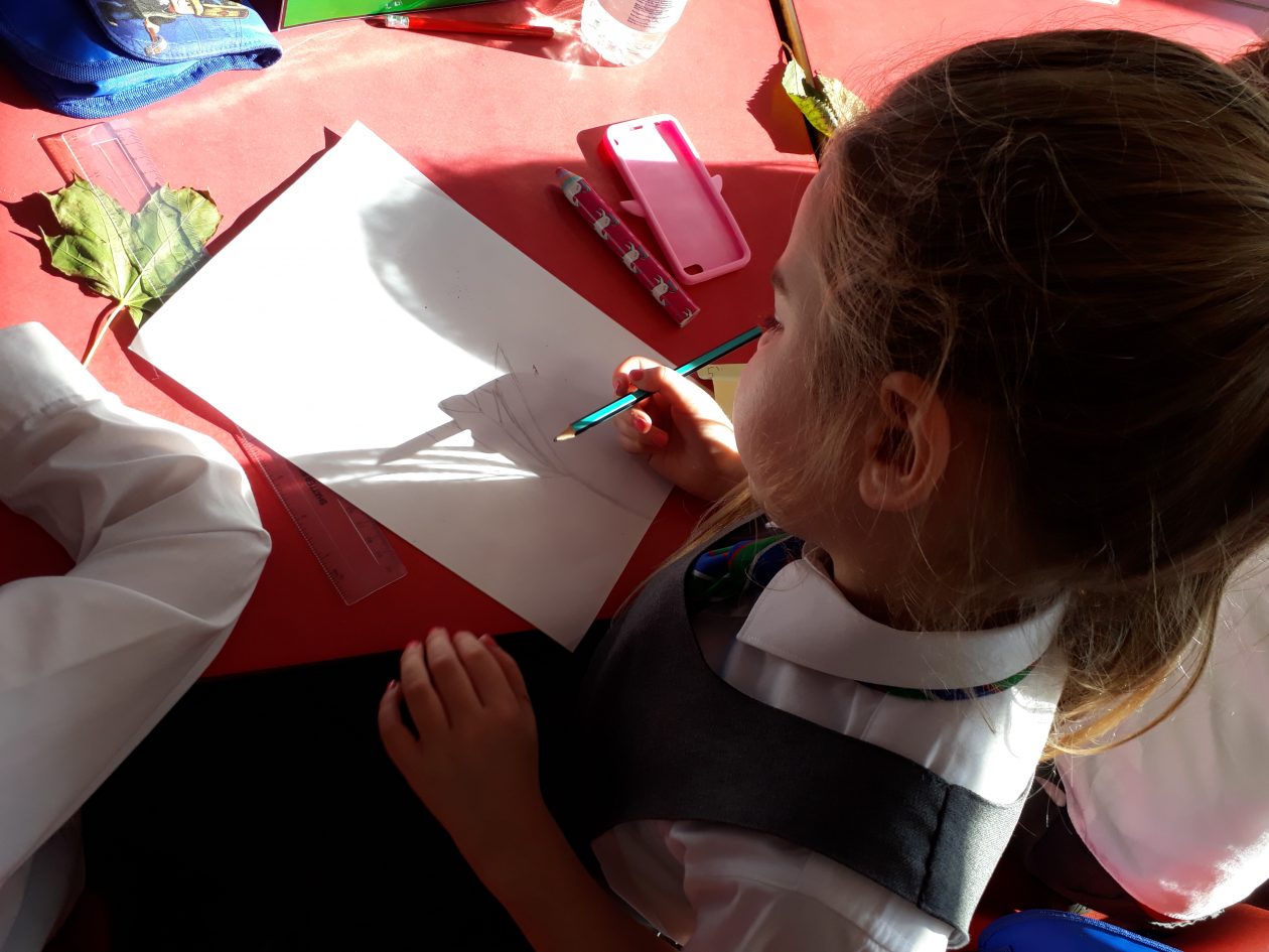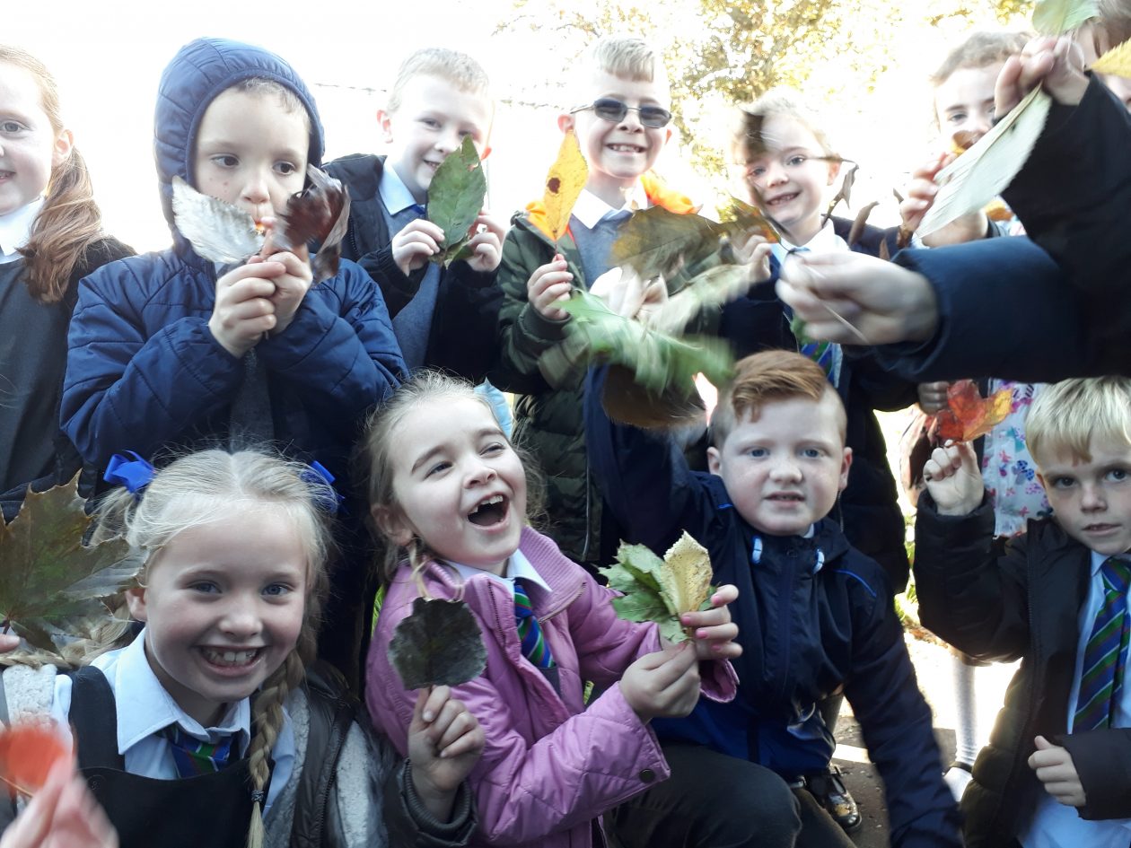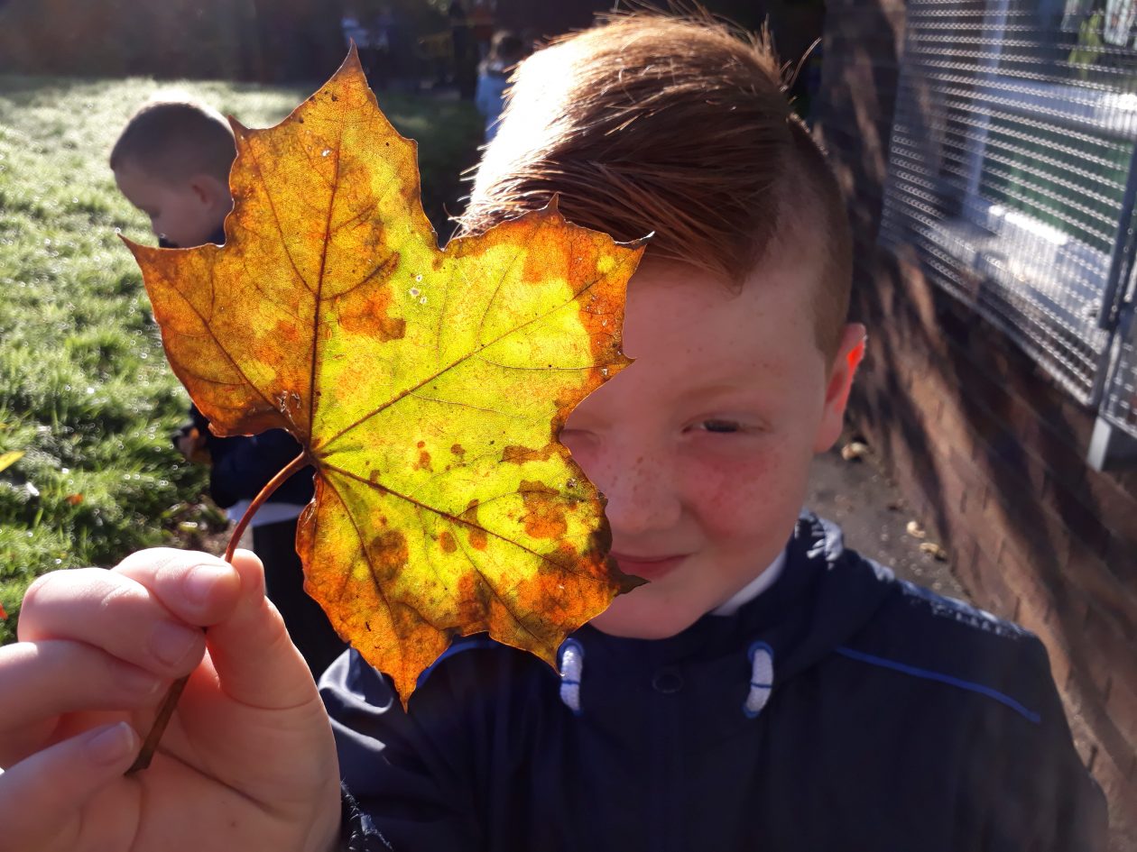 P3 Rm 10 gathering autumn leaves for still life drawing.