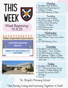 The week ahead in St Brigid’s: W/B 22.9.25