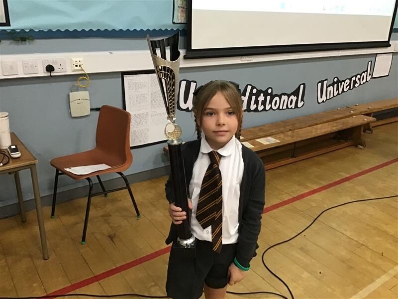 Whole School Dancing Achievement October 2, 2025 Karen McNab Leave a comment This great girl won a trophy for dancing and she told her friends about it at assembly.