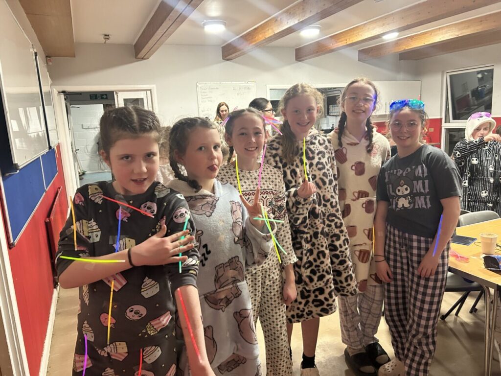 Tiring ourselves out with a campfire, hot chocolate treats and a glow party – see you tomorrow, Coatbridge! (Did you miss us?)