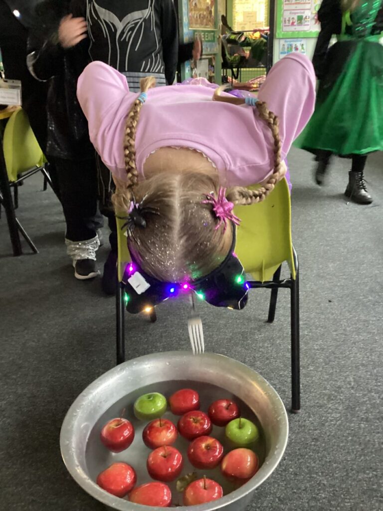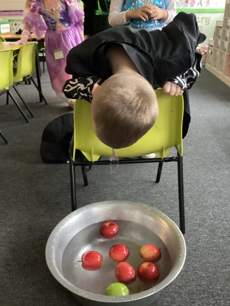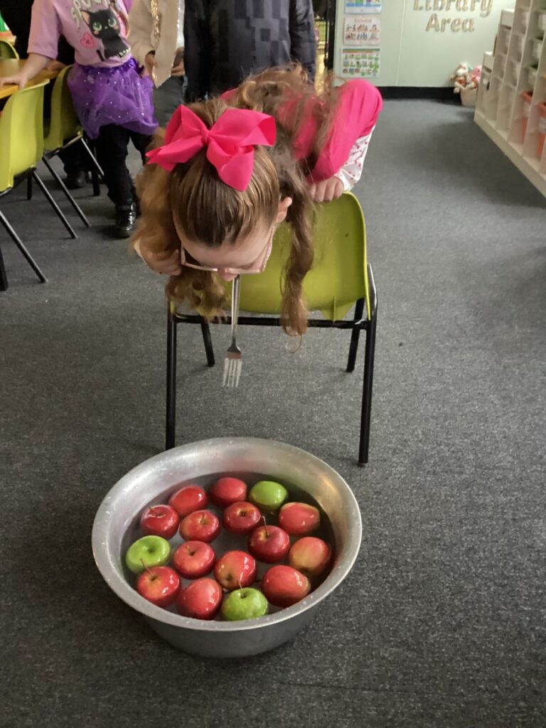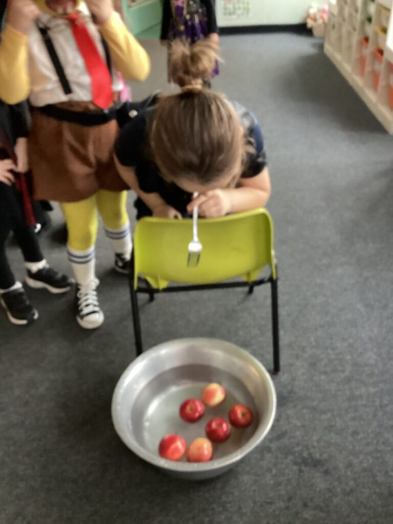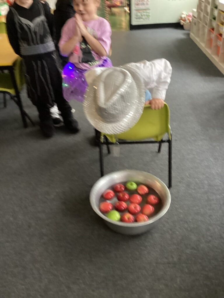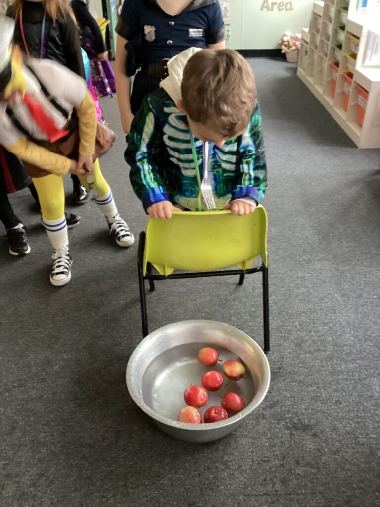 We are having a spooktacular time playing some Halloween games in the classroom π Here we are dooking for apples π