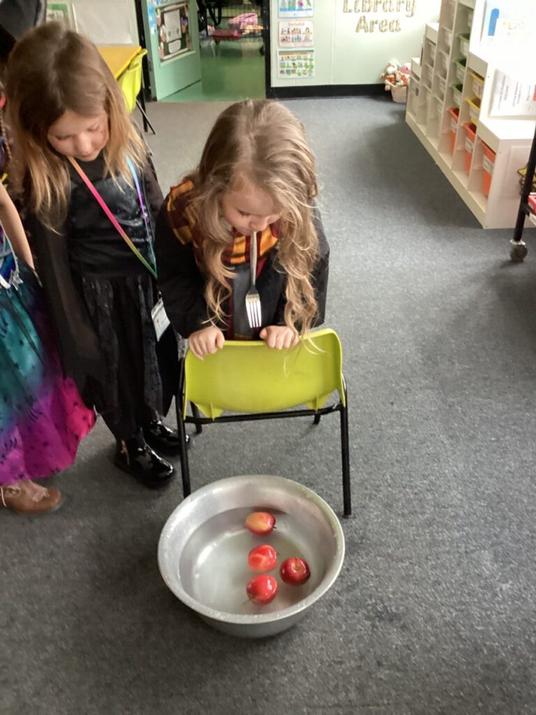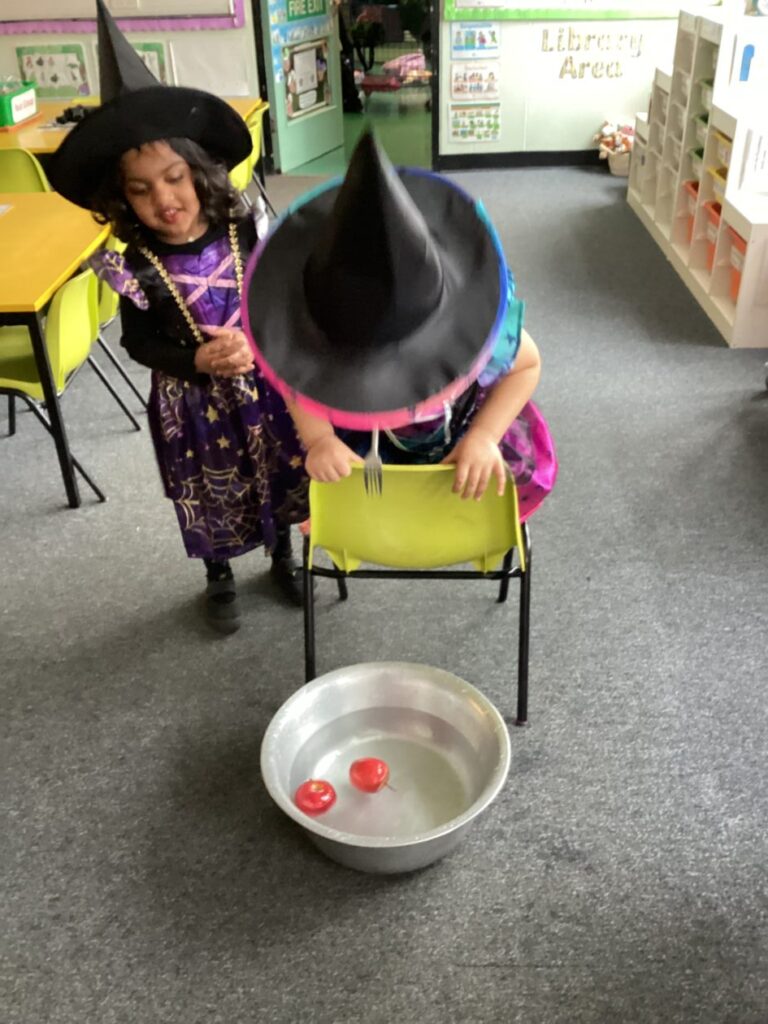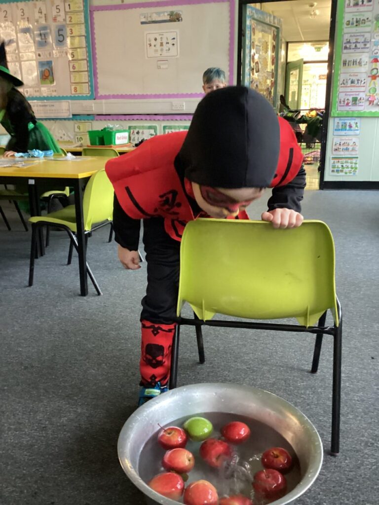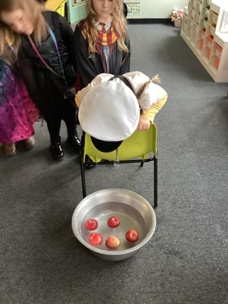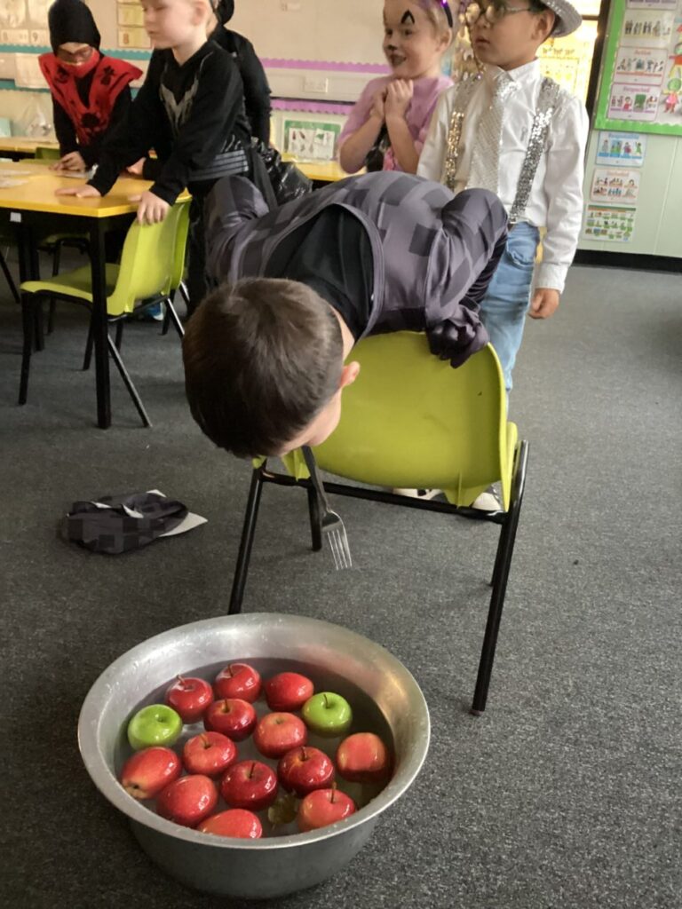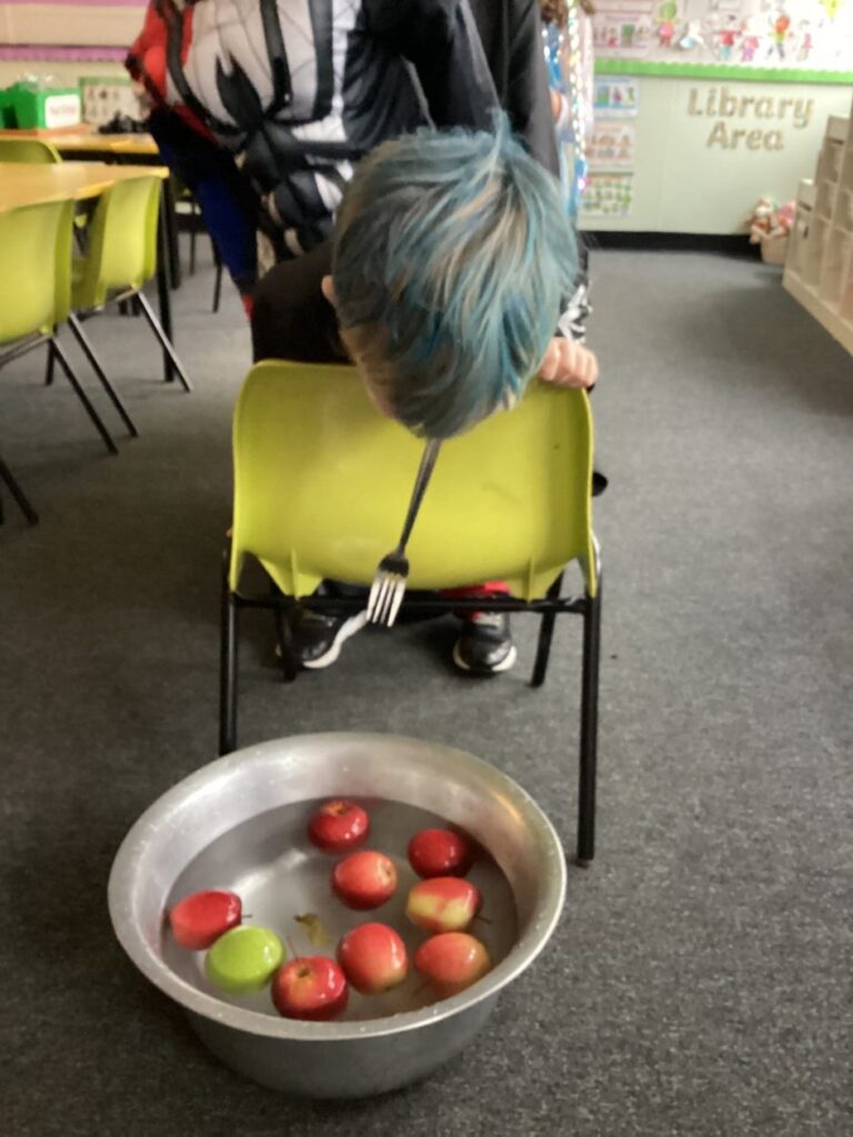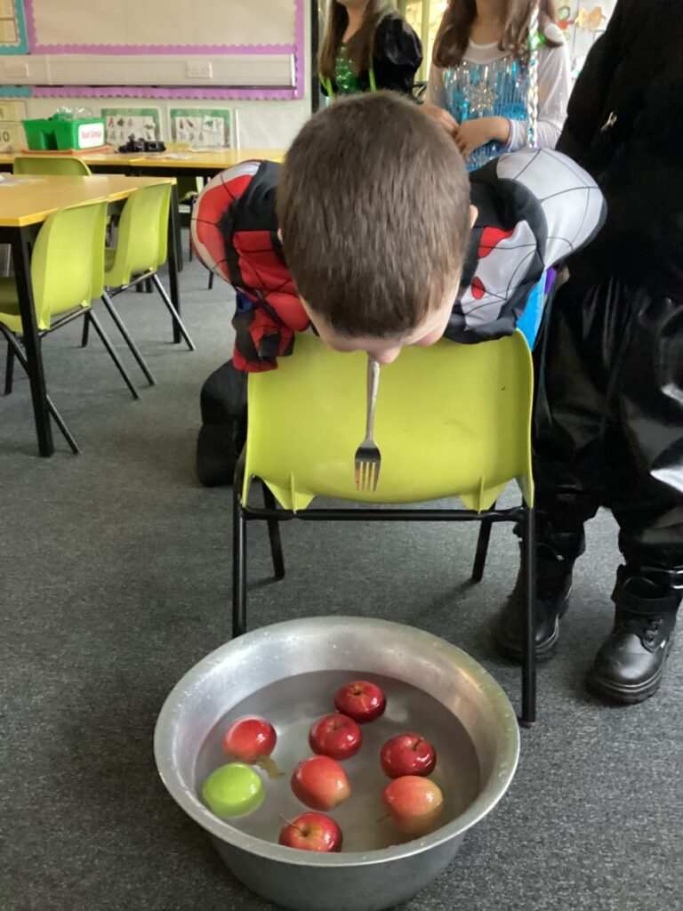 We are having a spooktacular time playing some Halloween games in the classroom π Here we are dooking for apples π