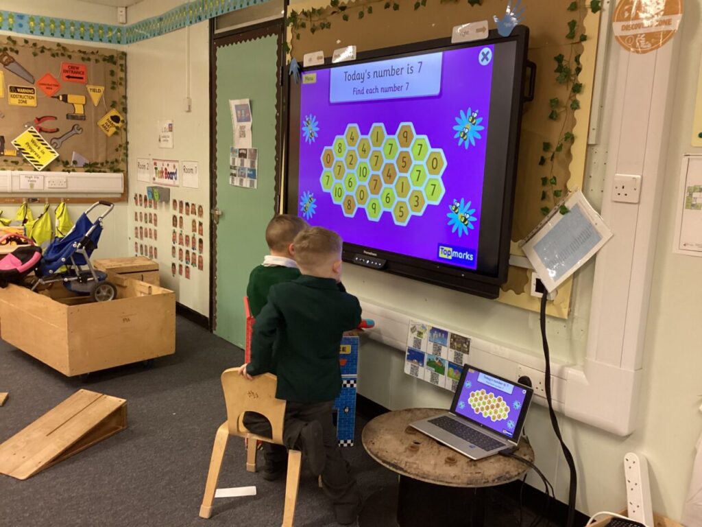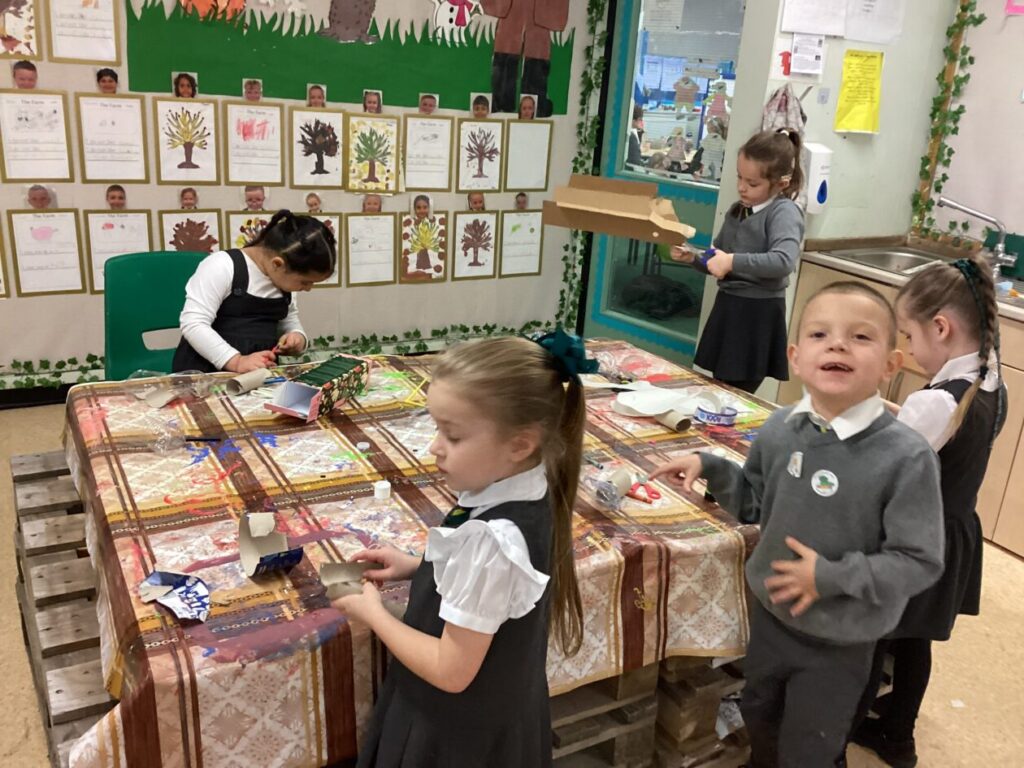 Room 1 invited the Room 13 representatives of the Reading Leadership Group to come round for some reading time – the senior pupils helped the infants to write book reviews, and they had lovely chats about authors, illustrators, and the different characters in their chosen stories.