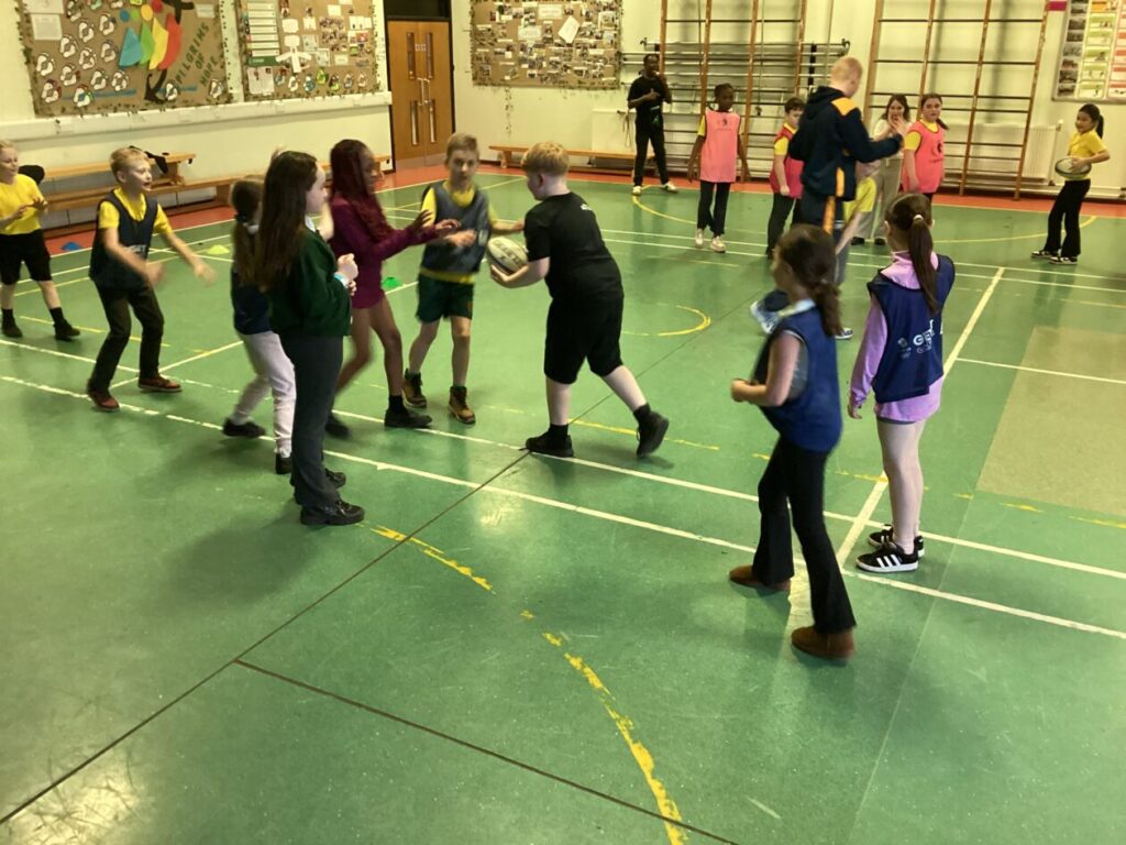 Room 11 enjoyed their second session of rugby today learning a new game Bear Apocalypse and played some mini games of rugby practising their pocket pass.