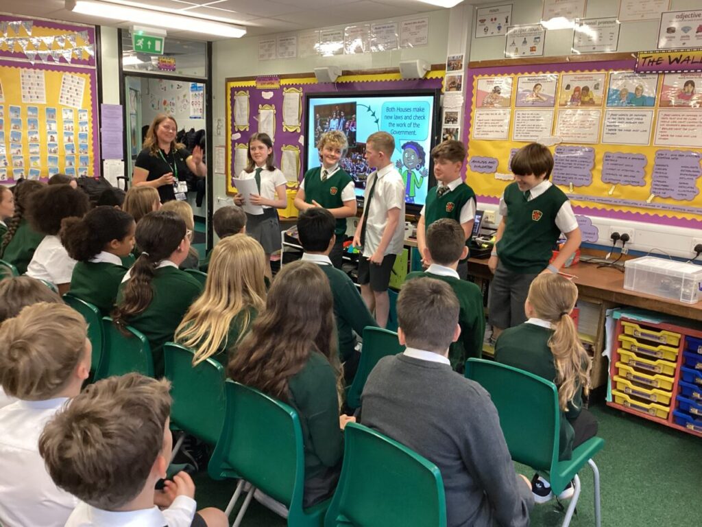 Rooms 12 and 13 were pleased to welcome Philippa Mason from UK Parliamentary Education for a very informative visit. We learned more about democracy, the make up of the House of Commons and the House of Lords, the UK Voting system, and the Legislative process! We then linked this information to our work on the UNCRC and our class charters.
