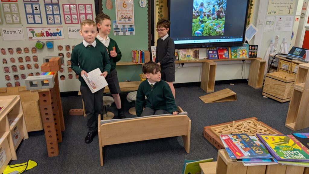The children created their own library today in the area. They organised the books into fiction and non fiction. Well done !