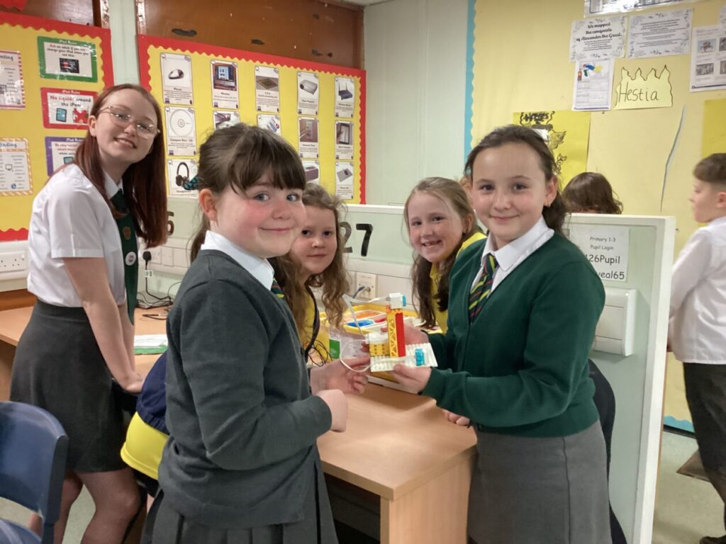 Today in I.C.T the Primary 7’s came round to build Lego spike with us! Once we had split into groups we got to building. We worked together to build our very own amusement park build’s. Afterwards we did coding we recorded videos and took photos of them!