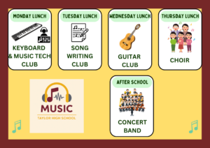 We are re-building the extra-curricular activities within Taylor High School Music Department to allow learners the opportunity to develop their musicianship skills and make friends who are like-minded. We have recently introduced an annual Young Musician of the Year Competition within Taylor High School and all learners are encouraged to take part to build their performance skills and confidence in preparation for SQA examinations and future performance opportunities they may wish to be involved in.