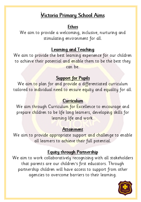 At Victoria Primary School and Nursery Class our pupils are at the centre of everything that we do. We aim to provide a safe and nurturing environment where children can experience high quality learning and teaching. Children are encouraged to continually challenge themselves and to develop their strengths and talents to achieve their full potential.