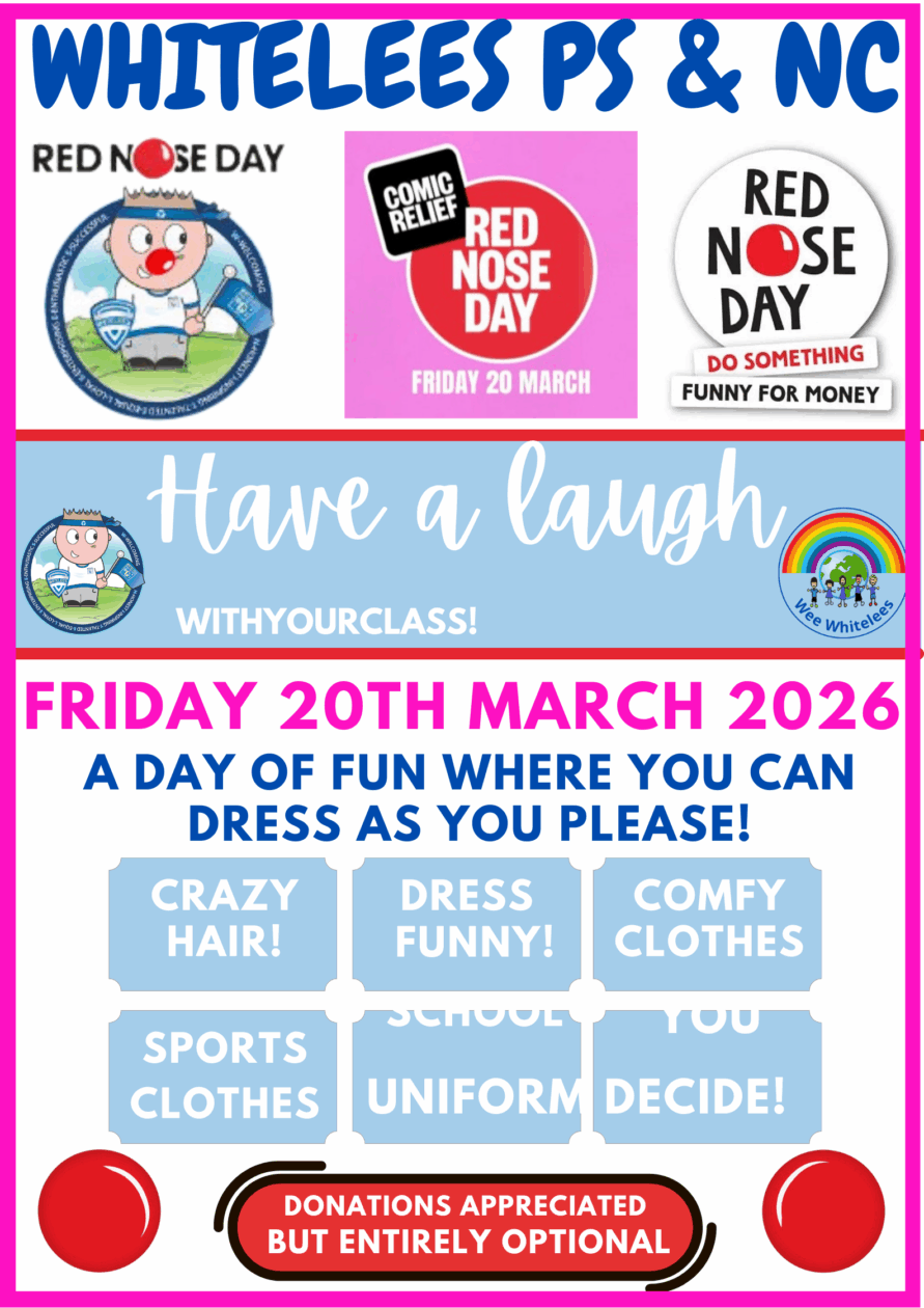 Children are welcome to dress up as their favourite book character or simply come to school wearing something comfy and cosy for the day. They can also bring in their favourite book to share and enjoy with their classmates.