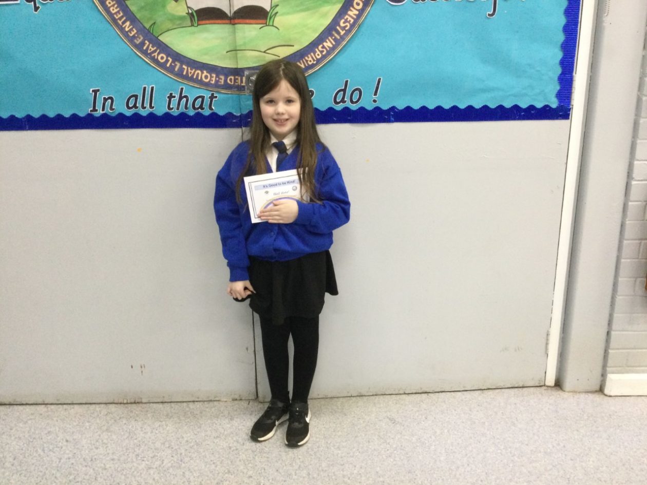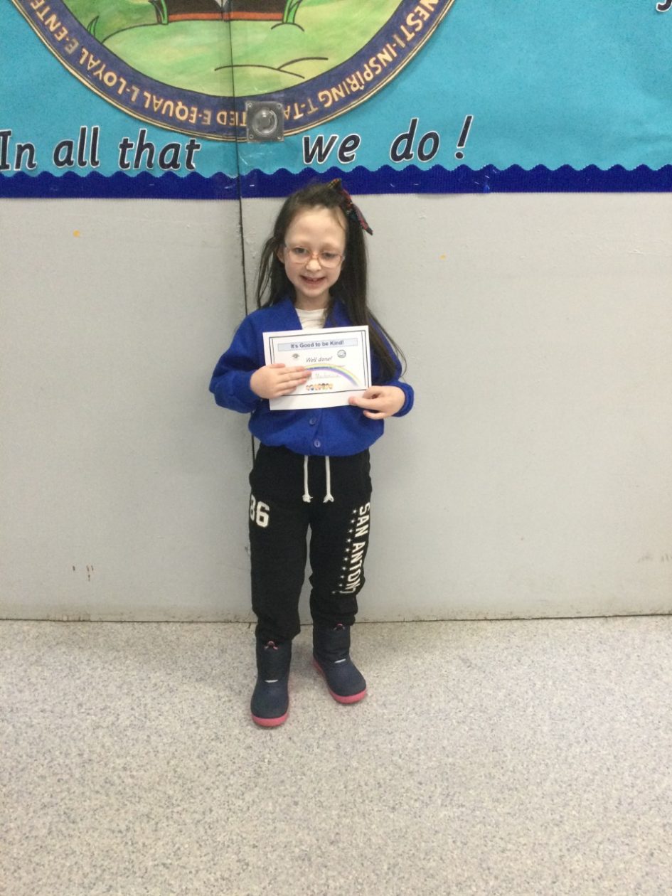 Congratulations to all our award winners this week! We are very proud of you all. Special congratulations to the brother who both won It’s Good to be Kind certificates this week. Well done boys!