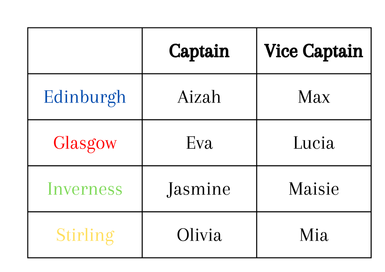 Our school is divided into four vibrant houses: Edinburgh, Glasgow, Inverness, and Stirling, each with its own team of enthusiastic leaders. Each house is led by a Captain and a Vice Captain, who work together to inspire their teammates and encourage participation in a variety of activities throughout the school year. Every week, houses earn points based on achievements in areas such as behaviour, teamwork, academic progress, and extracurricular activities. These points are carefully counted and tallied, with the winning house earning a special reward at the end of each term. This is announced at our weekly assemblies. The house with the most points overall is awarded the House Cup, celebrating their collective effort and school spirit. Through friendly competition, our house system fosters a sense of unity, pride, and healthy rivalry, while motivating students to strive for their best in all aspects of school life.