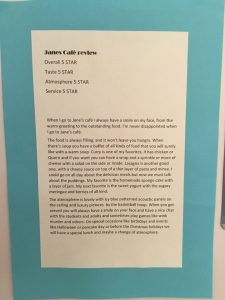 Our school lunches are the envy of the island population. Earlier this term, the children wrote some restaurant reviews which are shown here. The other photos are from our special St Patrick’s Day lunch today. We look forward to welcoming you for a school lunch soon!