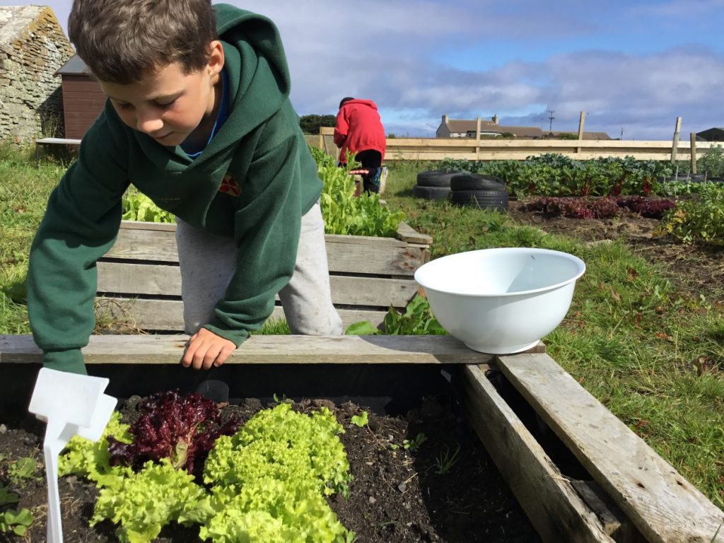 At lunch, the salad was so good. We had pasta with it and cake for pudding. The salad was great because it was home grown, and it was prepared by us. We look forward to picking our tatties over the days ahead and having them for our lunch. This means we won’t have to buy so much food for lunch any more.