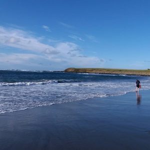 through the fallen leaves – although we don’t have a lot of trees in Orkney there are some places with a few, like Hillside Rd in Stromness. In Autumn and Winter, the nights get dark sooner, so most of our walks are in the dark, and I have always loved looking up at the stars. Winter walks can be cold and windy, so I don’t always enjoy them so much, though it is still good to get some fresh air.