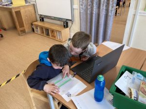 P1-4 are making PowerPoints about different jobs in Shapinsay and Orkney. They wrote to lots of people to find about the jobs, and are now putting the information in PowerPoints. P4s are doing a great job at helping the younger children.