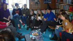 Our well established annual storytelling event took place on Wednesday 31st October, with around twenty pupils attending the event for some snacks and to share their ghost and horror stories. We established ourselves in the reading zone, dropped the lighting and spent our lunch break trying to scare each other with stories.