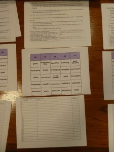 This week pupils looked at using keywords to find information in the contents and indexes of books. To do this they play ‘Keyword Bingo’. Each group gets four books on various Ancient Civilisations and a bingo sheet with keywords or key phrases. As keywords are called out, pupils record the word(s), search for them in the books and note down which book and page number on which they found them. If the word called is on the bingo card, they cross it off. This is a fun way of getting them using the books, as well as introducing them to some of the topics which they could choose to do their research on.