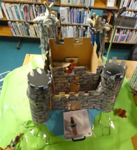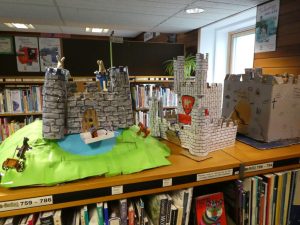This unit of work culminates in pupils, in small groups, building their own model castles out of cardboard boxes, amongst other things. Some of these amazing models go on display in the library.