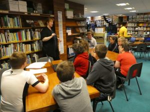 Mrs Sinclair, the Librarian managed to do a quick introduction to the library and its various activities to most groups, although timing was short. Pupils were told that they could borrow a book and it was emphasised that they needed to take care of them, being informed that, as is policy here, books borrowed that are lost or damaged would have to be replaced or paid for. They are expected to return the books borrowed today during the first week in August, when they start the academy properly. Some of the pupils also availed themselves of the free (older) books on offer taking them home to read or give to siblings.