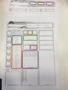 The character sheets can appear quite complex to begin with. A useful tip would be to ensure that the main sections of the sheet are highlighted. To this end, one could colour each of the most used sections: Initiative; Saving Throws; Skills, and Attacks. This means that if a player is struggling to find what they need (which even happens with experienced players), then the DM can say “Attacks in purple box”, for instance.