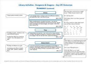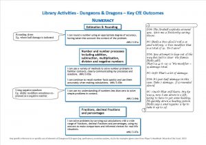 D & D can be linked to several key Curriculum for Excellence outcomes within Health & Wellbeing, Literacy, and Numeracy.  The skills used within the context of the game (role playing; creativity; listening; talking; maths) are transferable to the real world.