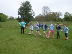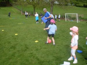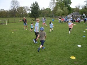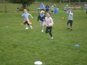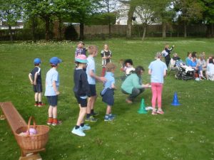 The children were divided into their Houses. First they all took part in a circuit of different activities, where they were winning points for their House.