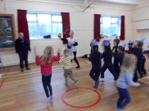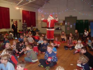Children enjoyed games and dancing, including the Conga and Pass the Banana. At the end Santa visited with presents for everyone. Thank you Santa for coming to see us, thank you to Parent Council for funding the party and thank you to Ernie and his helper for a super time!