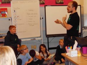 In class Robyn held a short Get Together about her work and how she wants the children to be more interested in promoting cycling, walking even riding scooters to school. She will be returning again to help run another event.