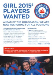 Dunblane Soccer Club are looking for Primary 6 girls to come and join the team. Please see the attached poster for details.