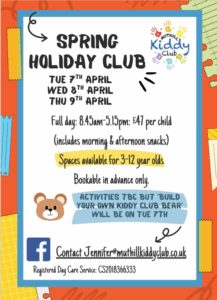 Muthill Kiddy Club are organising a Spring Holiday Club on: