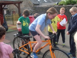 The children from P1-7 went around three stations. Here they learned how to repair a puncture, name the parts of the bike and how to make a delicious smoothie by cycling a bike!