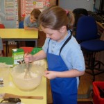 We then used our knowledge of doubles to double the amount of our ingredients, so we would have enough for everyone. We then discussed hygiene and cooking. Finally we got down to making our pancakes!