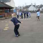 We were skipping today and were learning to run in and certain songs. We sang Jelly on the Plate, Sweeties in the Jar and Sausages in the Pan.