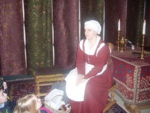 The children got to see what people ate in Medieval times in the Great Kitchen and how young boys had the job of turning the spits at the fire. They particularly enjoyed trying on clothes, playing the musical instruments of the time and having fun with the jester.