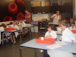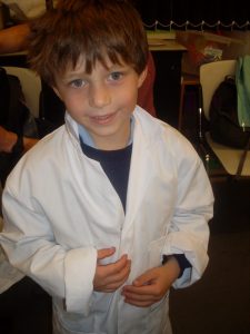 After lunch they put on lab coats and carried out a number of experiments related to our senses and  how liquids react with each other.